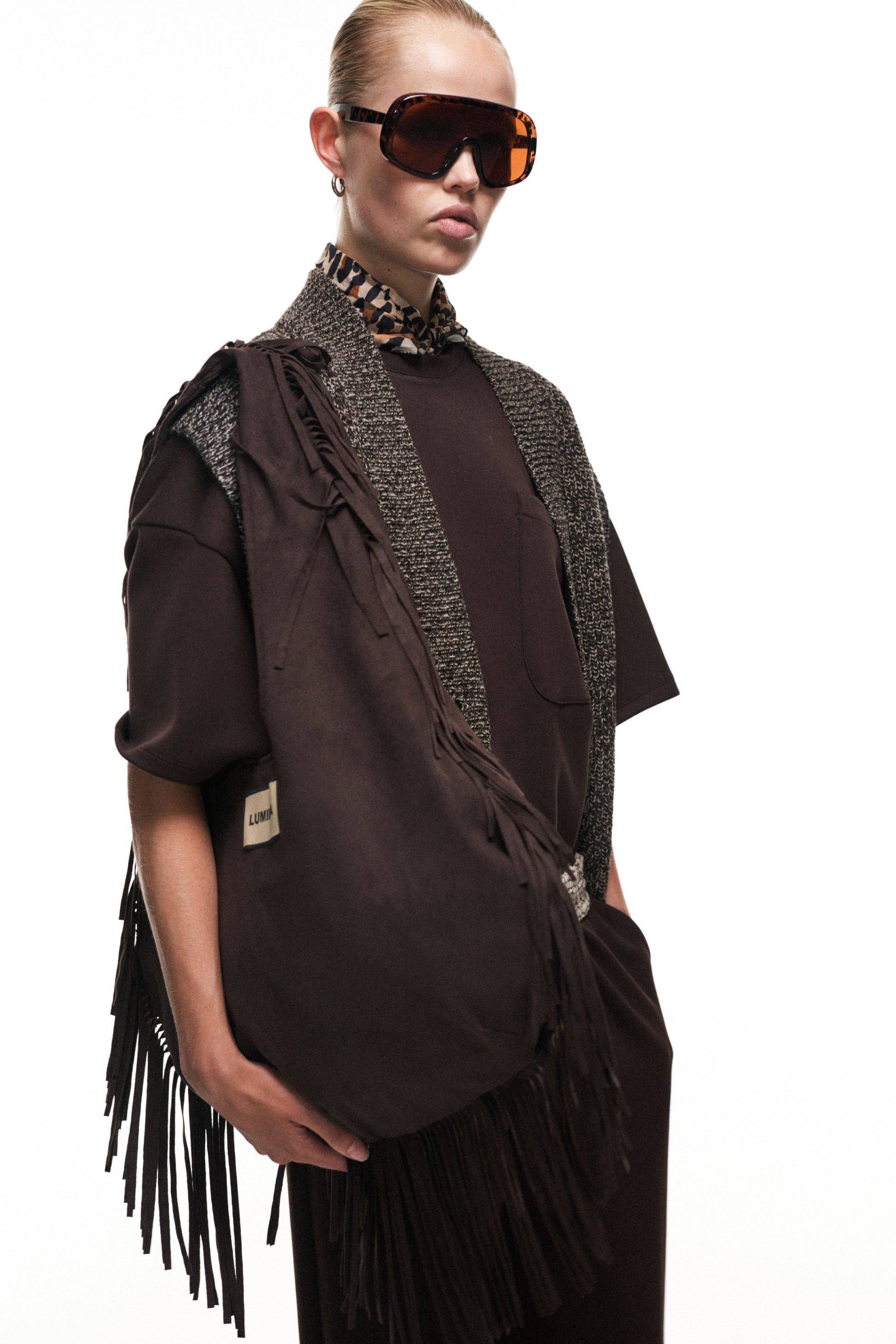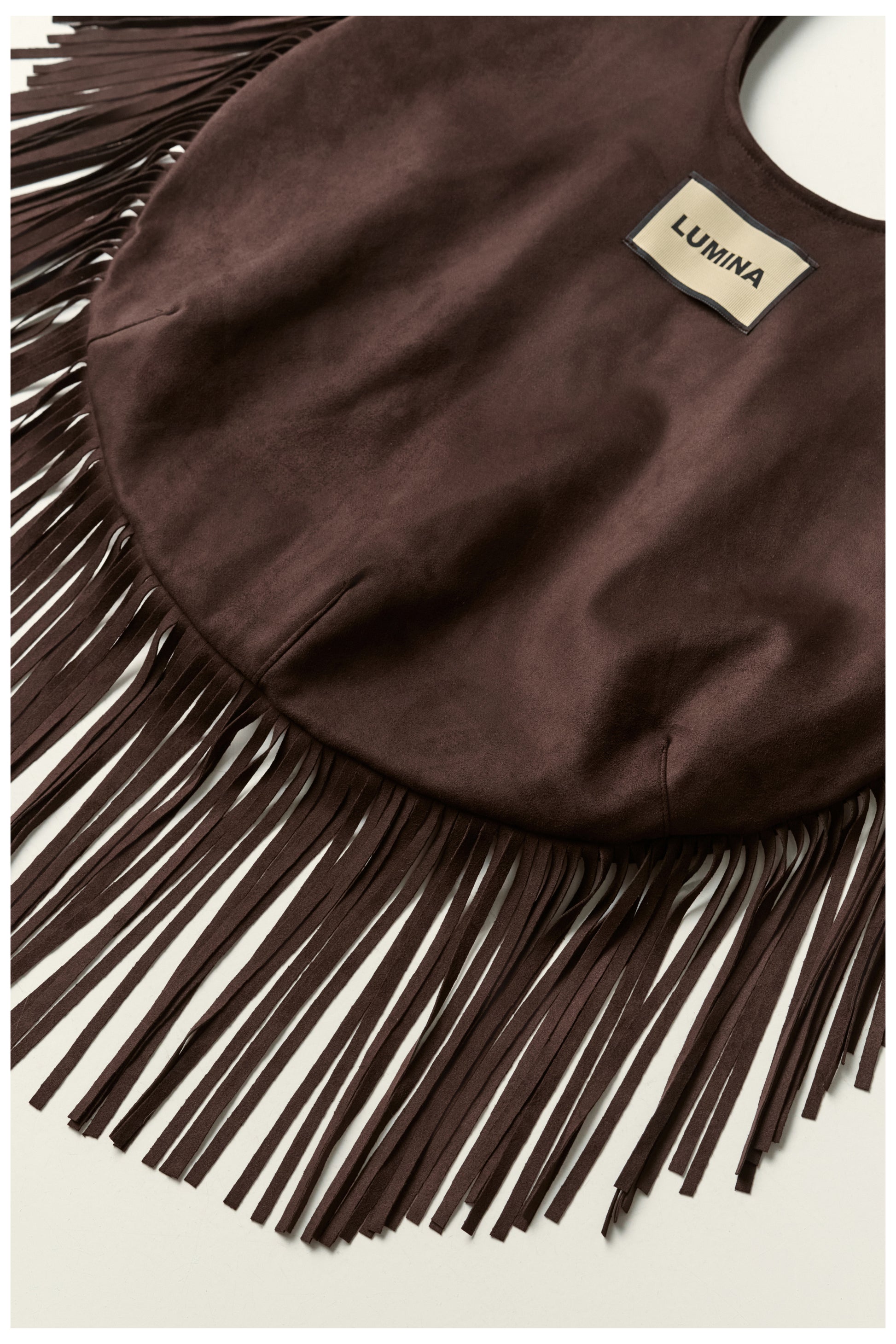Lumina- Fringe Τσάντα Suede με Μεταξένια Σατέν Επένδυση Καφέ