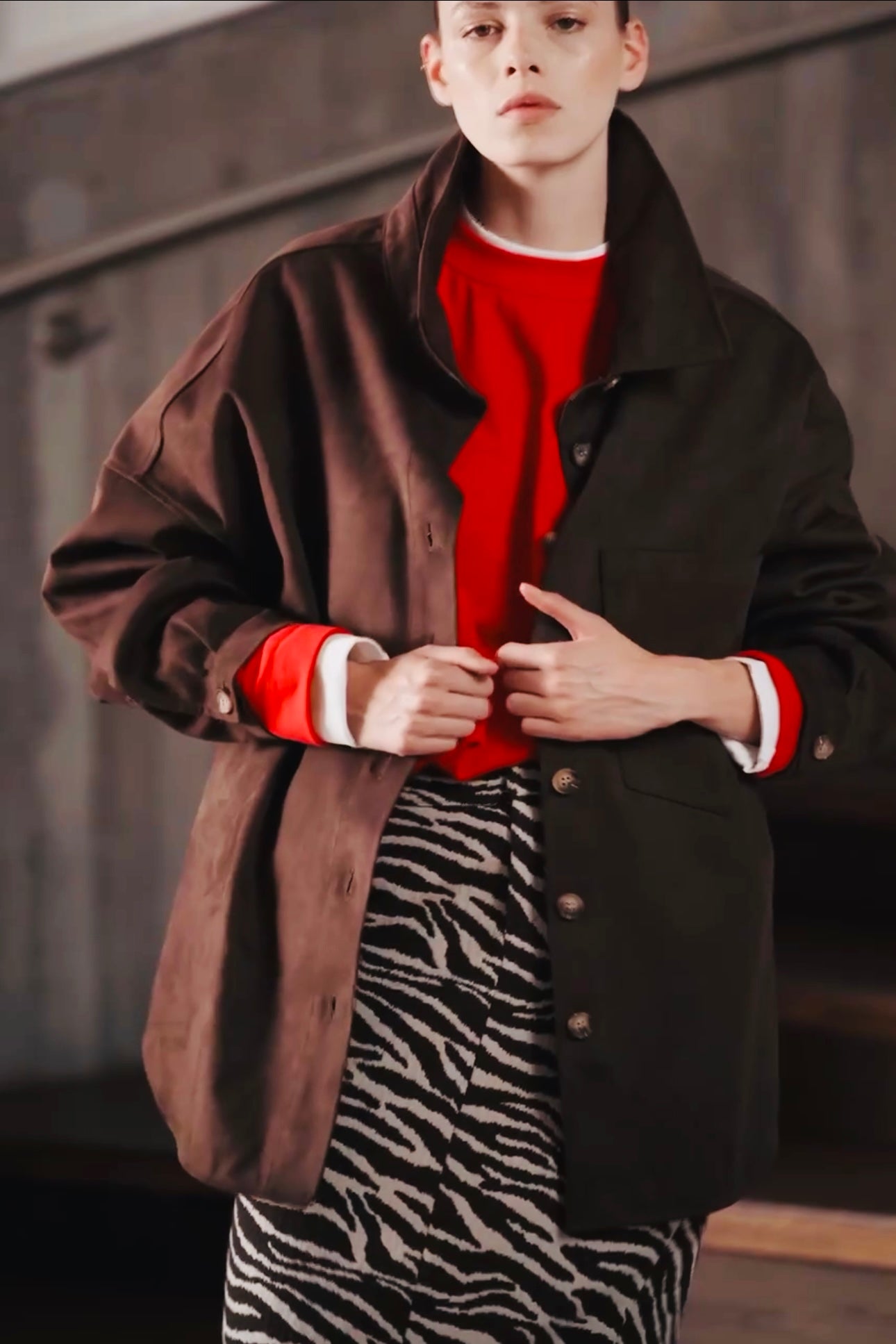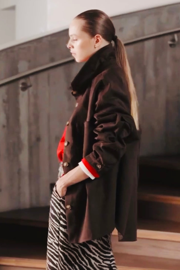 Αναβαθμίστε το στυλ σας με αυτή την κομψή oversize πουκαμίσα - jacket, ιδανική για κάθε εποχή. Διαθέτει κλασικό γιακά με πέτο και εσωτερική φόδρα από καρό ύφασμα. Το μπροστινό κλείσιμο με κρυφά κουμπιά προσφέρει μίνιμαλ και εκλεπτυσμένη εμφάνιση, ενώ το στρογγυλεμένο τελείωμα προσθέτουν θυλικότητα.