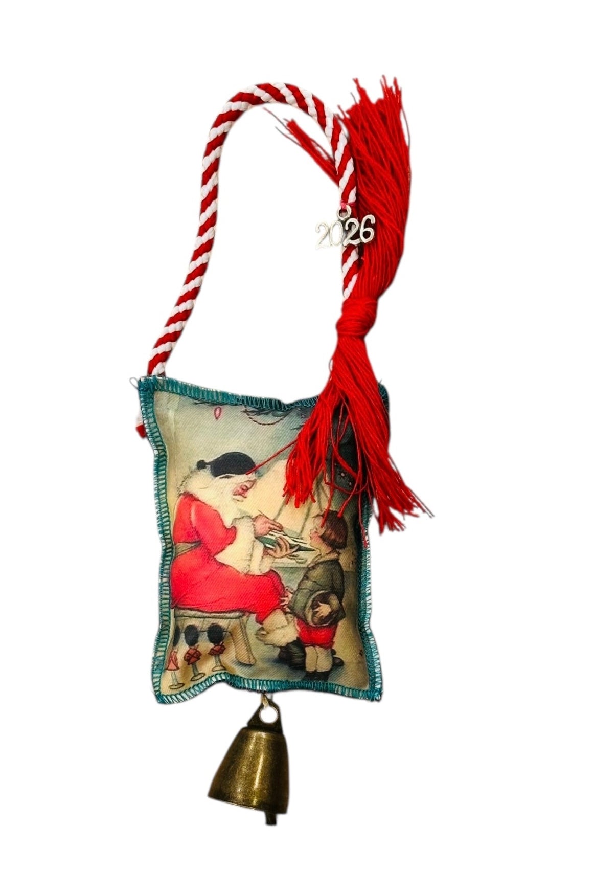 Maria Davilla - Χειροποίητο Γούρι Μαξιλαράκι Με Κουδουνάκι Santa