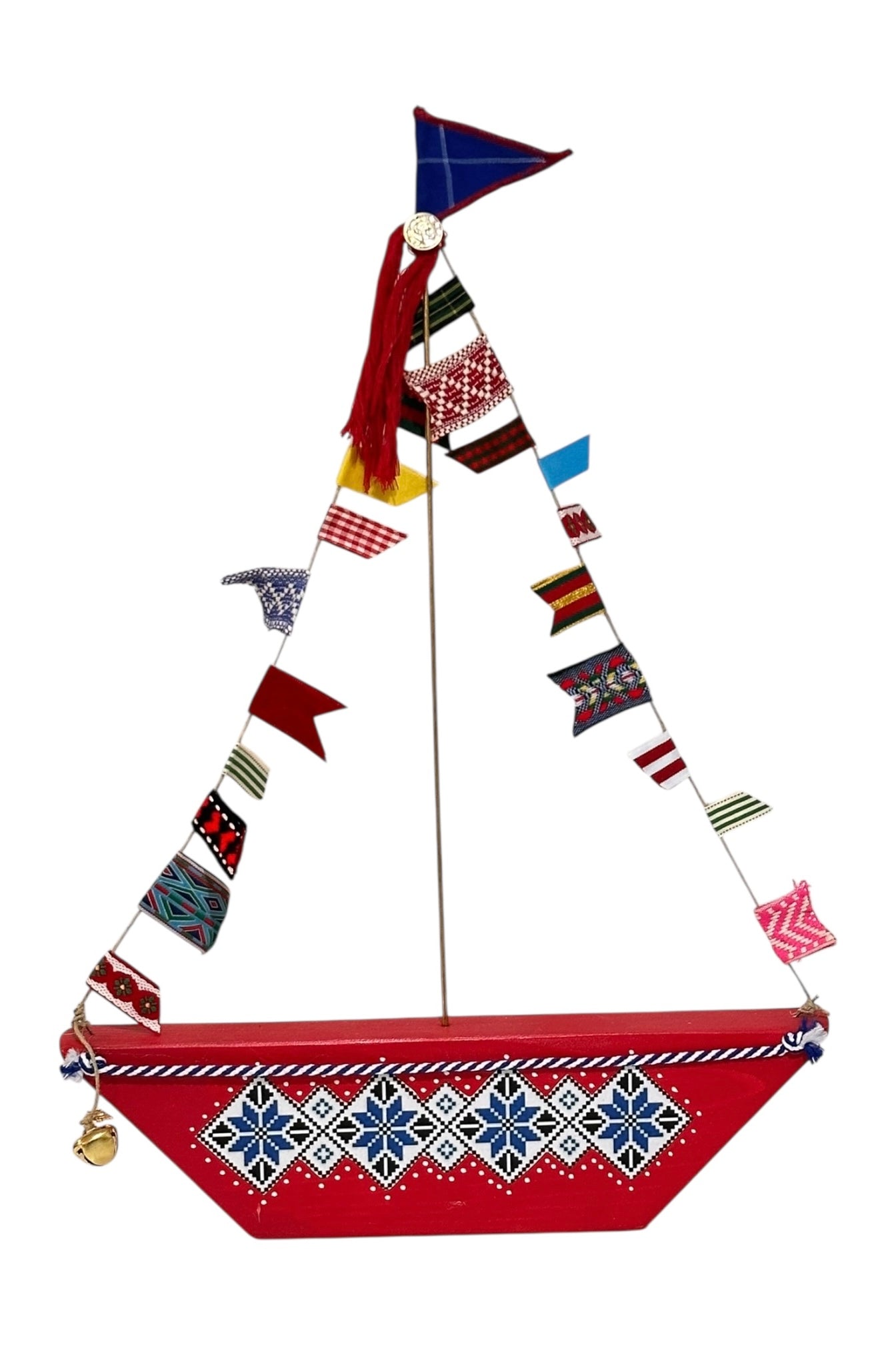 Συμβολίζει το ταξίδι μας στη ζωή, τη χαρά, την εξερεύνηση ή μια νέα αρχή. Άρρηκτα δεμένο με την ελληνική μας παράδοση. Κατασκευασμένο από υφαντό ύφασμα, διακοσμημένο με πολύχρωμα σημαιάκια από κορδέλες, ξύλινη βάση, μια φούντα και ένα διακριτικό μεταλλικό στοιχείο με το 2026 που του χαρίζει λάμψη.