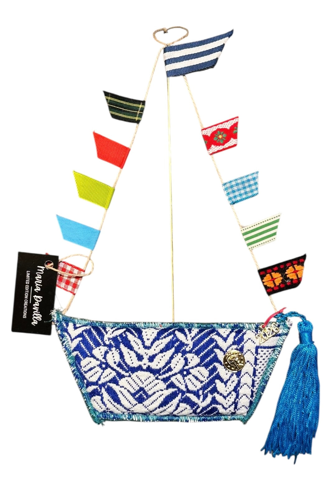Maria Davilla - Χειροποίητο Μεγάλο Καράβι από Υφαντό Με Σημαιάκια Γαλάζιο