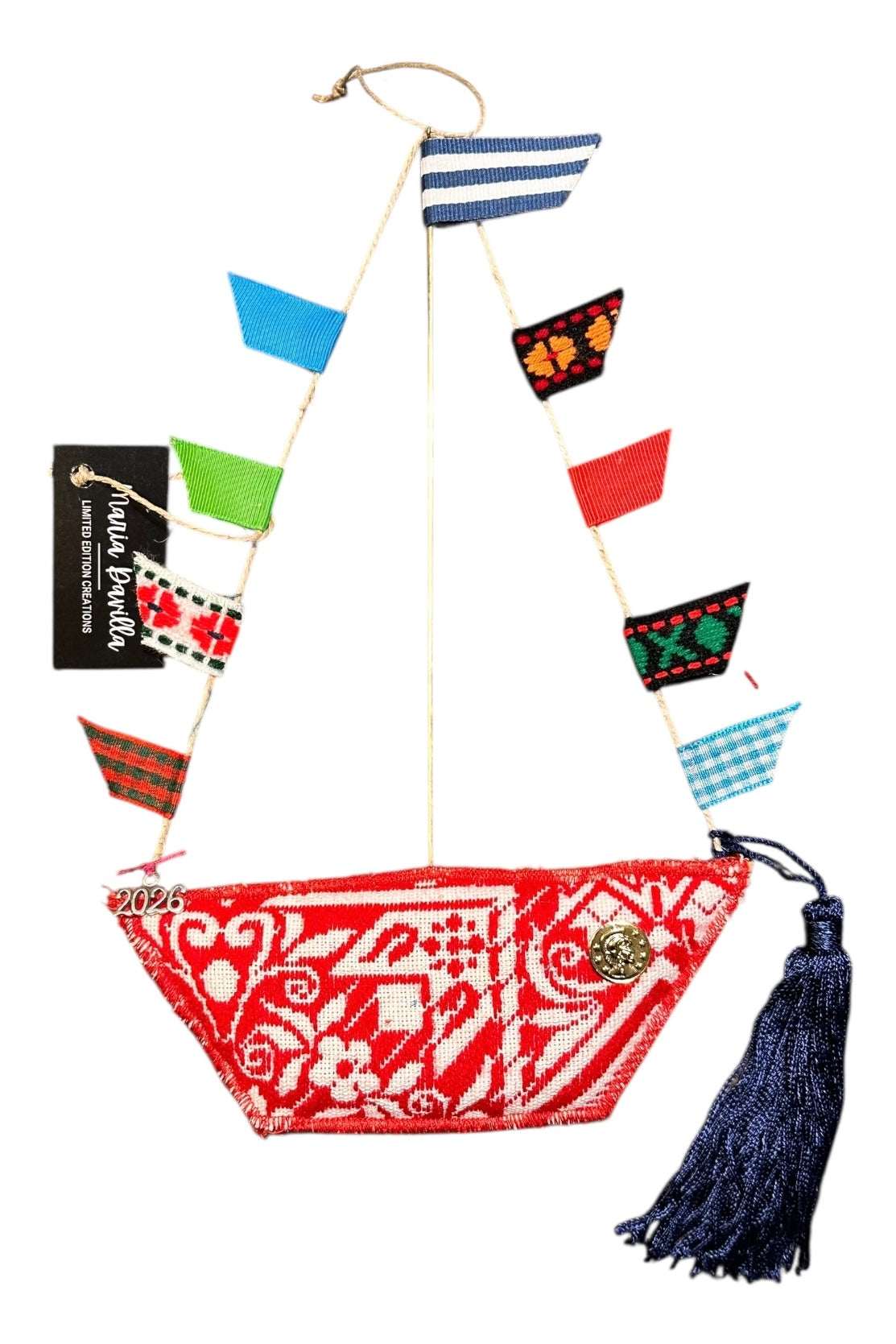 Maria Davilla - Χειροποίητο Μεγάλο Καράβι από Υφαντό Με Σημαιάκια Κόκκινο