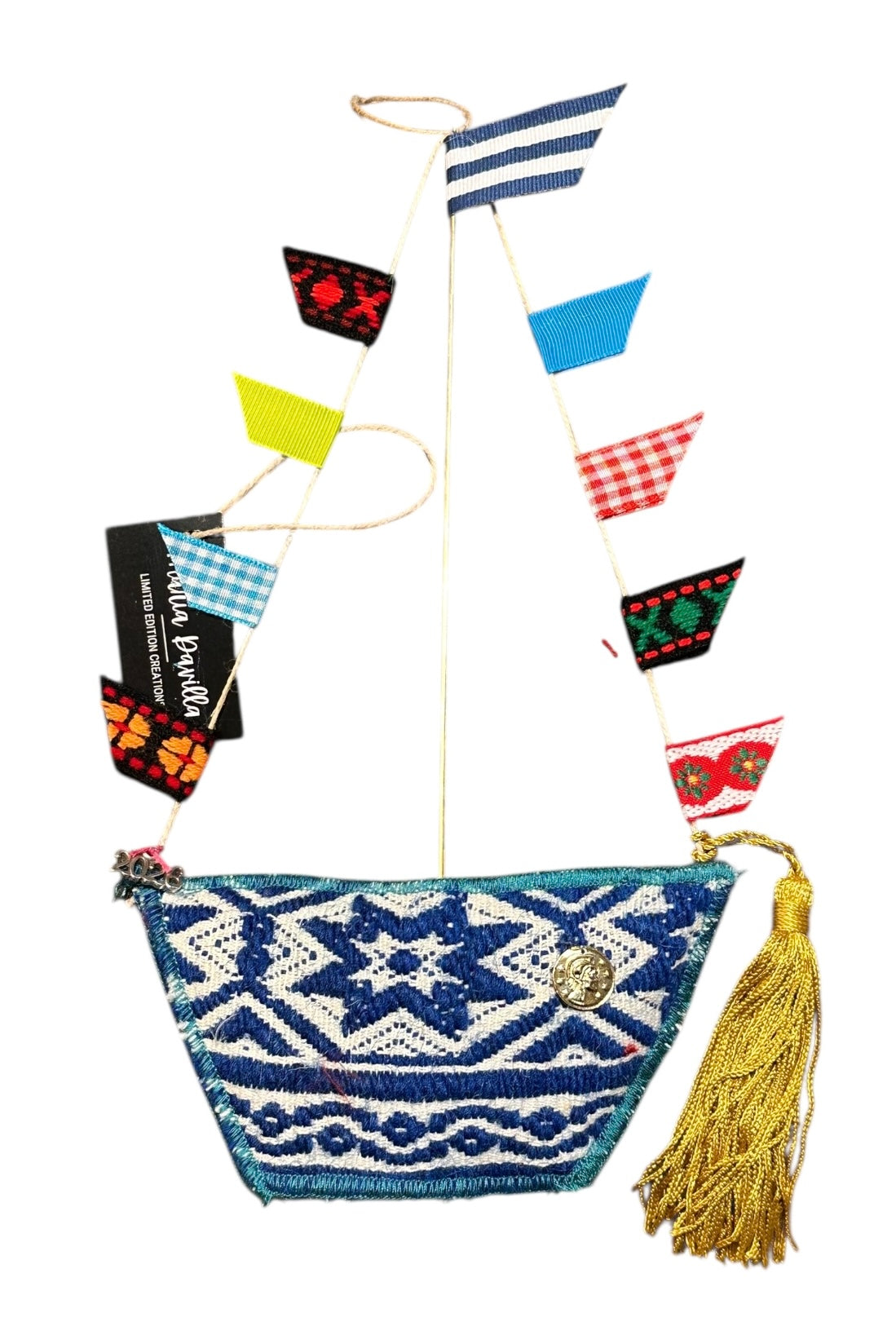 Maria Davilla - Χειροποίητο Μεγάλο Καράβι από Υφαντό Με Σημαιάκια Μπλε & Γαλάζιο