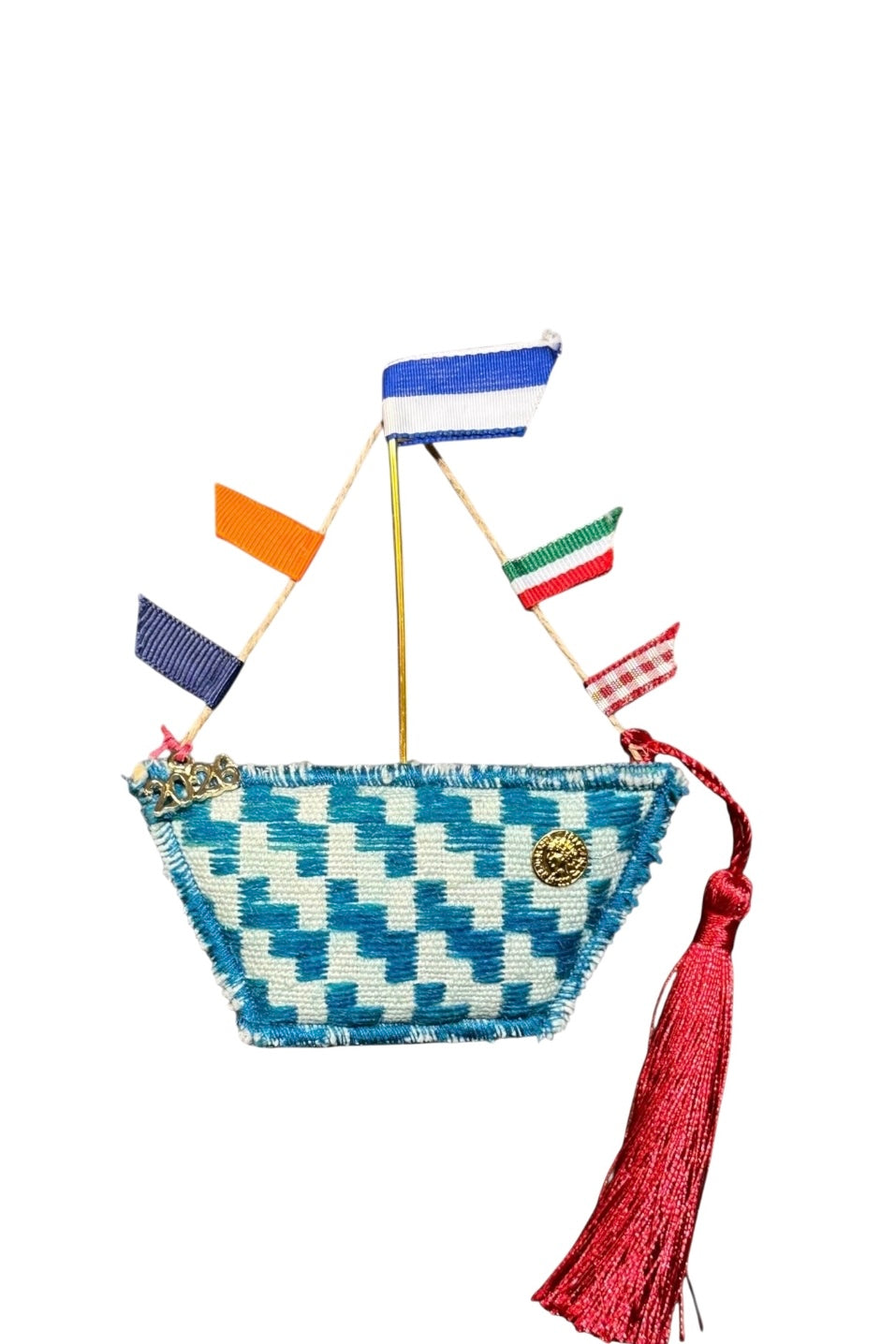 Maria Davilla - Χειροποίητο Καραβάκι από Υφαντό Με Σημαιάκια Γαλάζιο
