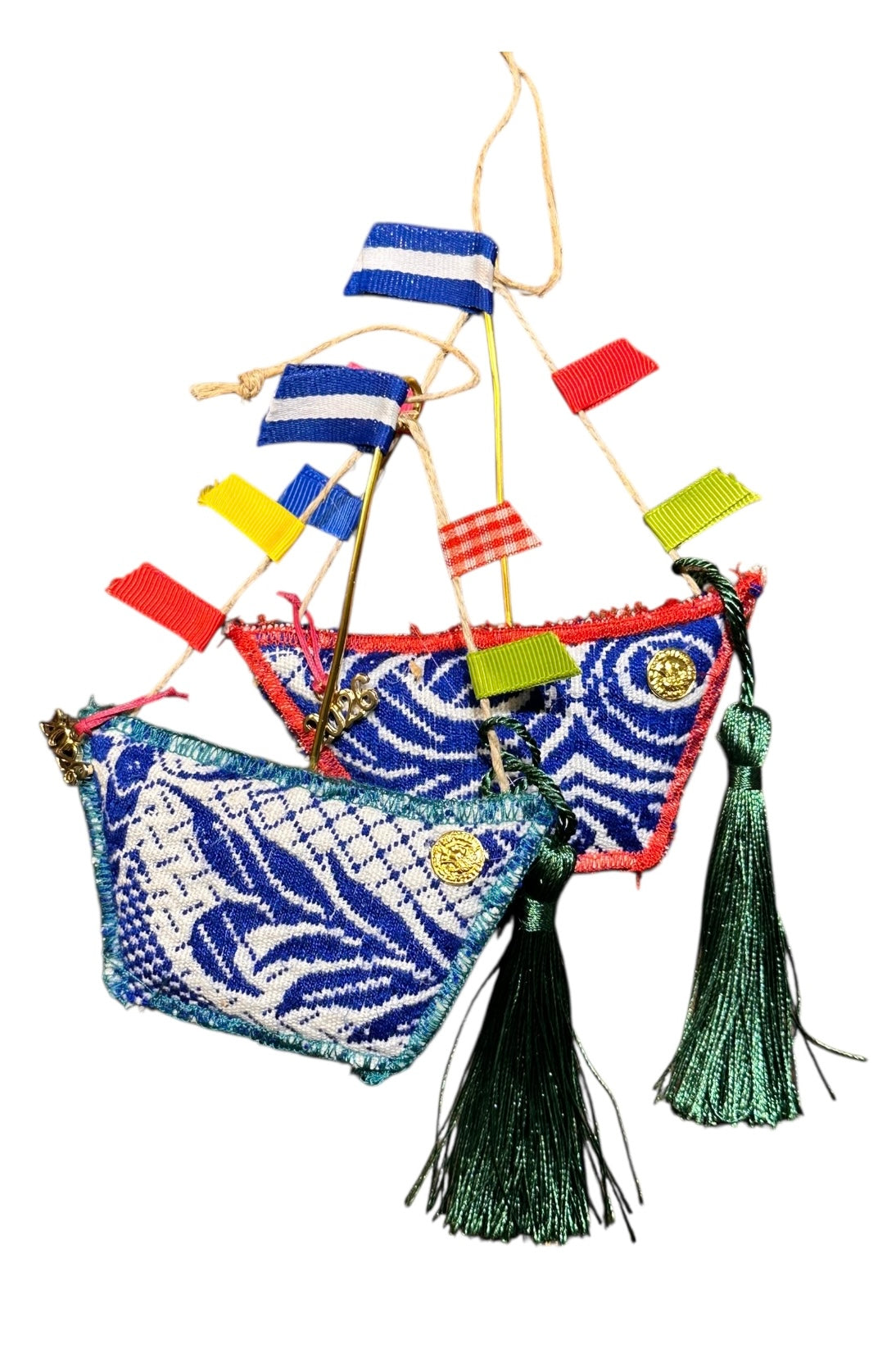 Maria Davilla - Χειροποίητο Καραβάκι από Υφαντό Με Σημαιάκια Μπλε & Κόκκινο