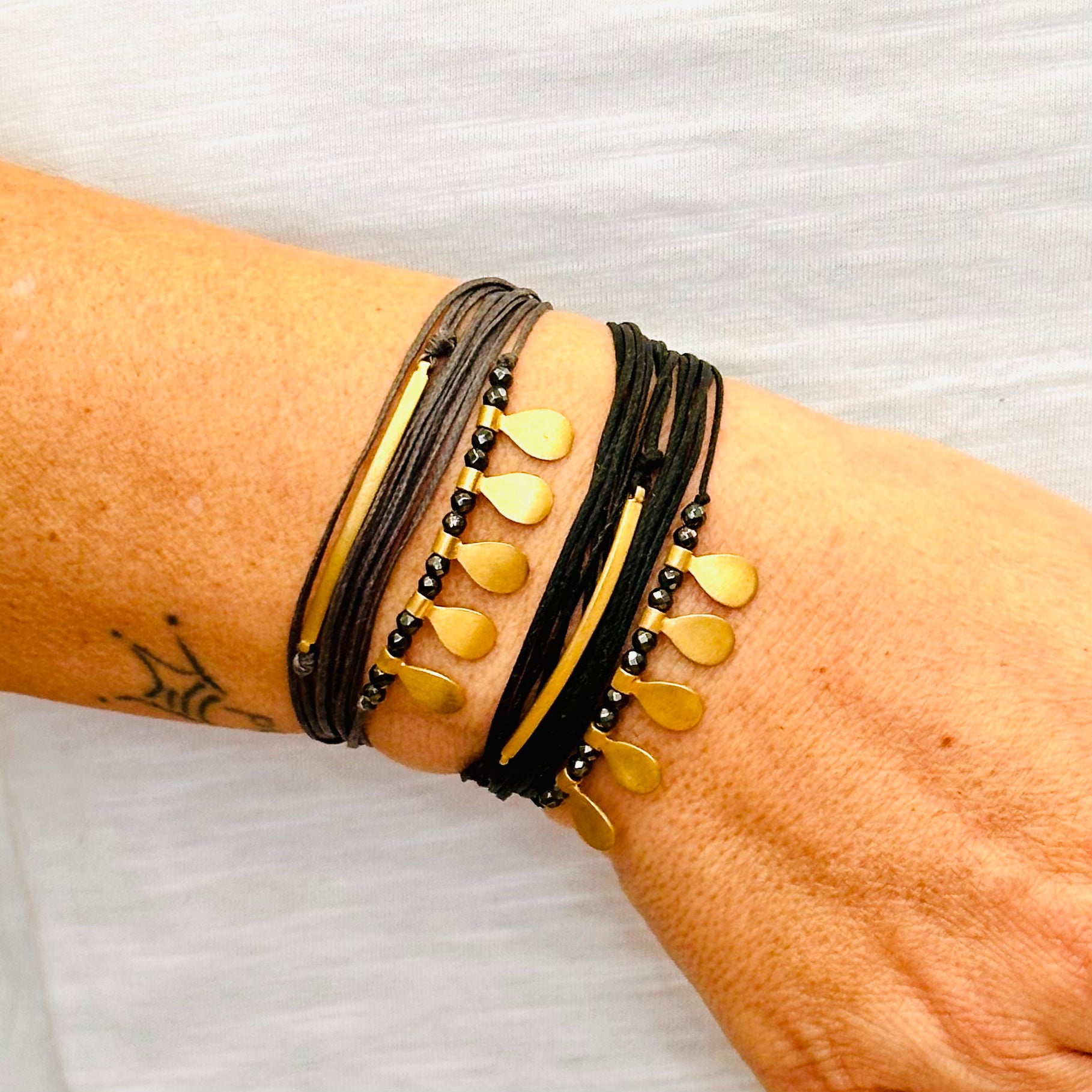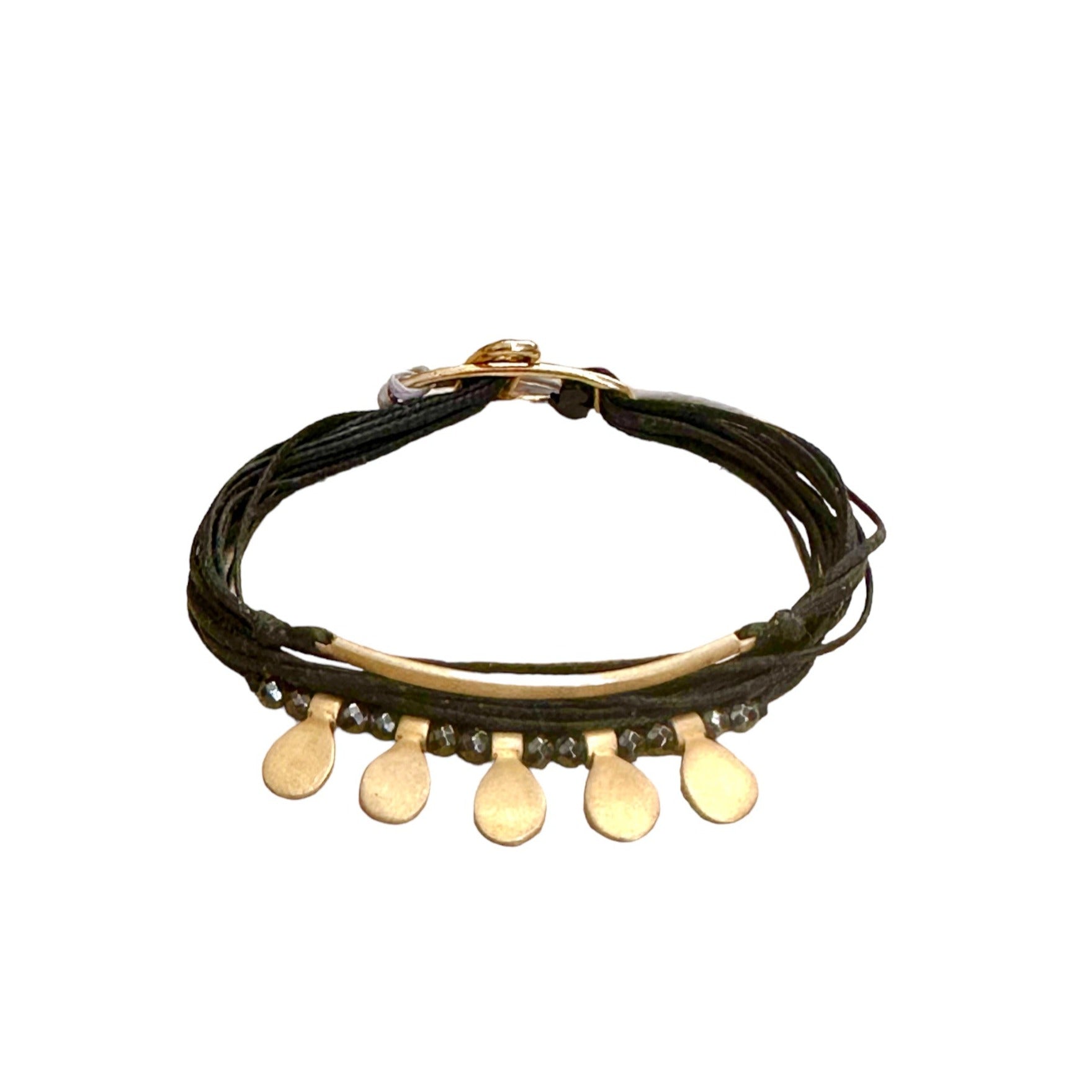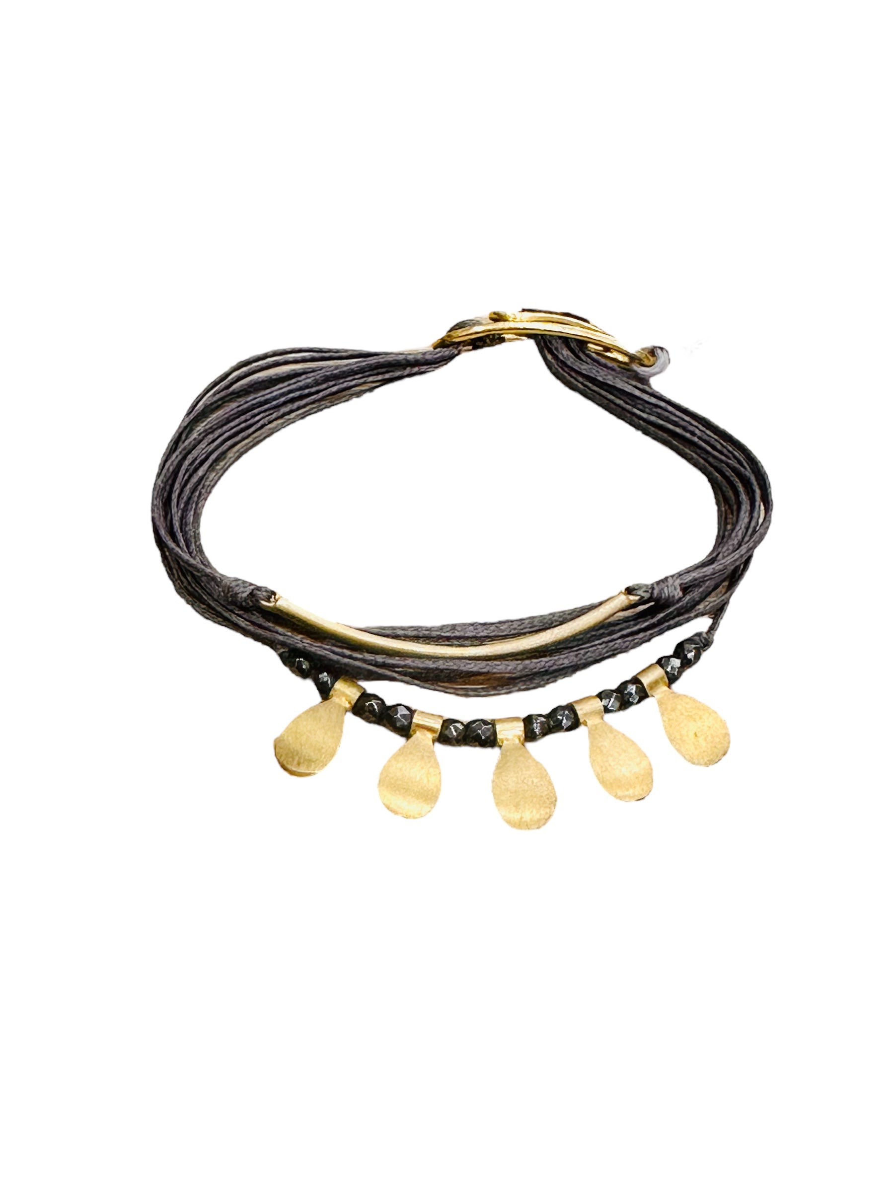Maria Samirka - Βραχιόλι Με Κερωμένο Κορδόνι Και Επίχρυσες Λεπτομέρειες