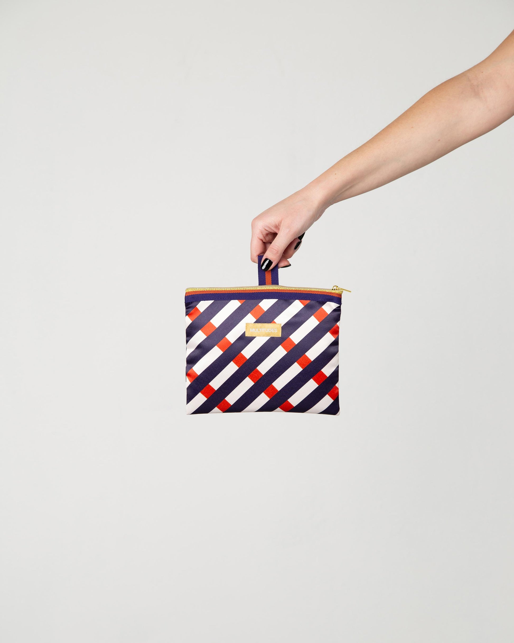 Η pochette από σατέν πολυεστέρα, διαθέτει χρυσό φερμουάρ και πρακτικό θηλάκι στο επάνω μέρος, ώστε να μπορεί να προσαρμόζεται εύκολα μέσα στην τσάντα. Είναι ιδανική για την αποθήκευση μικροαντικειμένων, όπως κλειδιά, αξεσουάρ ή προσωπικά είδη, διατηρώντας τα οργανωμένα και ασφαλή.