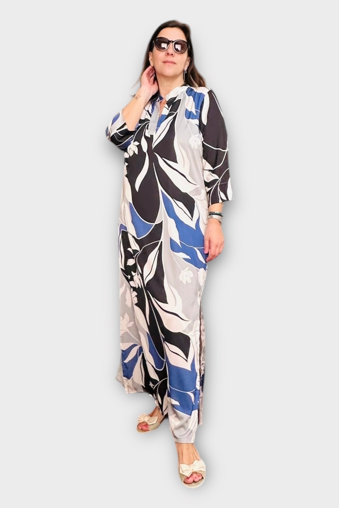 Αναδείξτε τη φυσική σας κομψότητα με αυτό το υπέροχο καφτάνι φόρεμα, ιδανικό για τις ζεστές ημέρες του καλοκαιριού αλλά και για κομψές αποδράσεις. Με χαλαρή γραμμή και αέρινη υφή, προσφέρει μοναδική άνεση χωρίς να θυσιάζει το στυλ. Φοριέται εύκολα από το πρωί ως το βράδυ – στην παραλία, στο νησί ή στην πόλη. Συνδυάστε το με σανδάλια και διακριτικά κοσμήματα για ένα αβίαστα κομψό αποτέλεσμα.