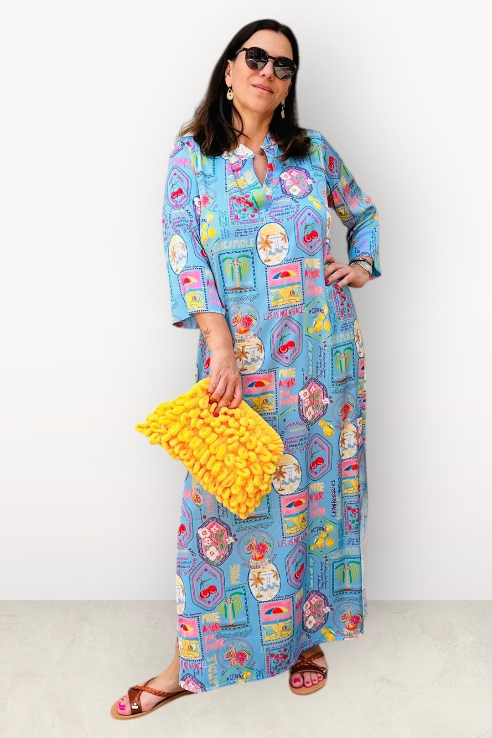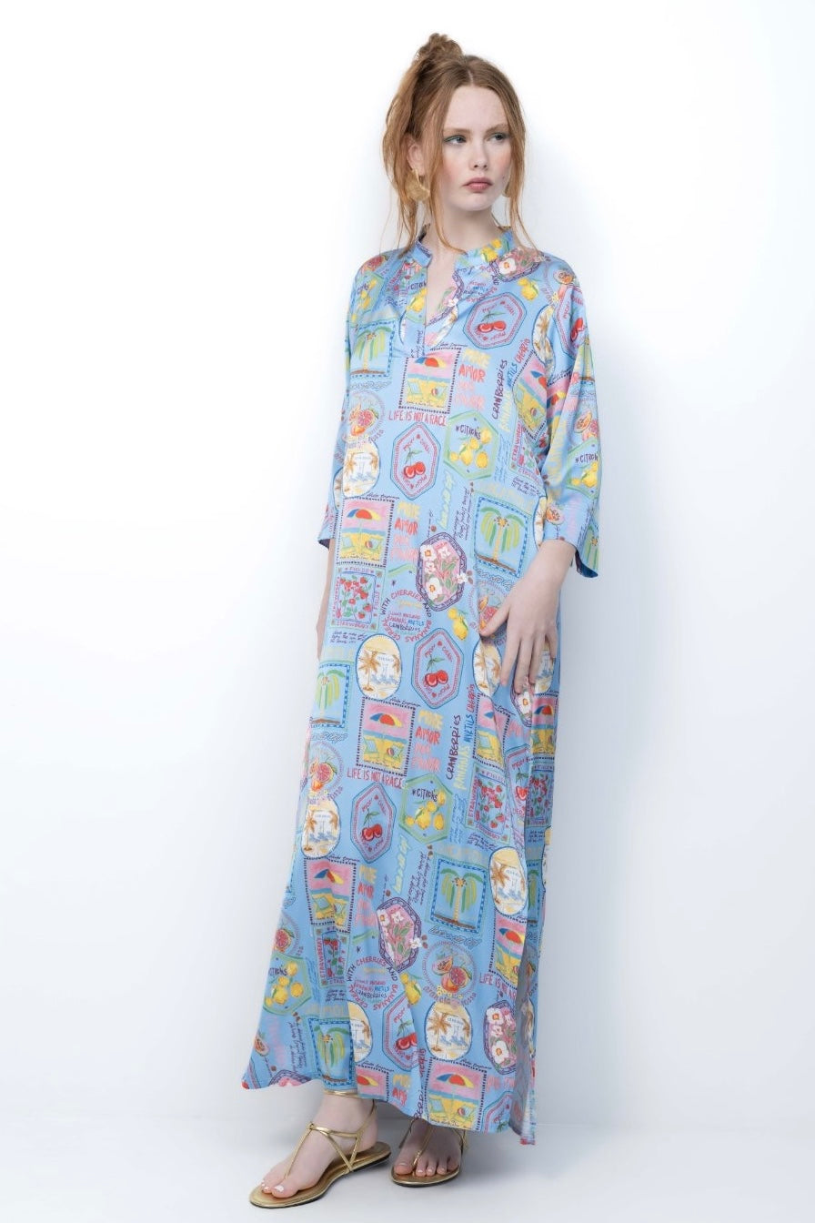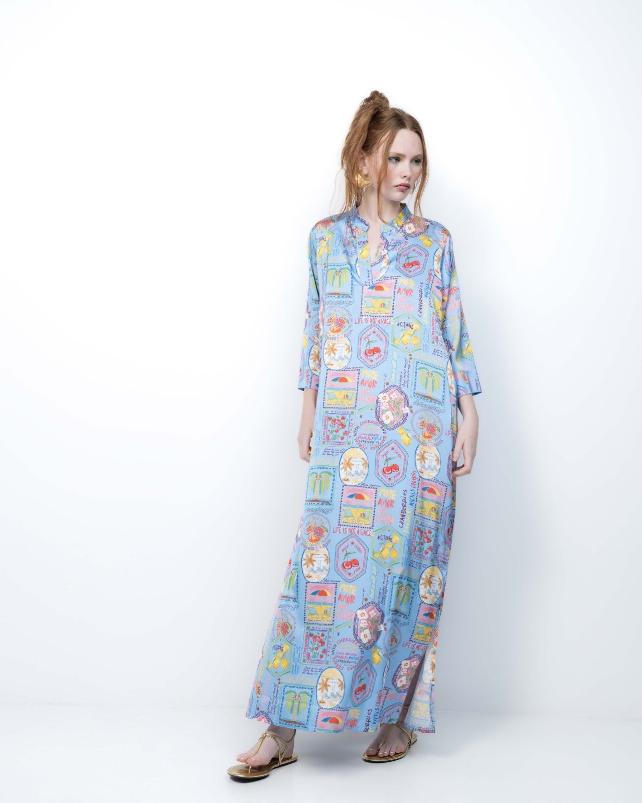 New Age - Maxi Φόρεμα Καφτάνι Santorini -24 Μπλε