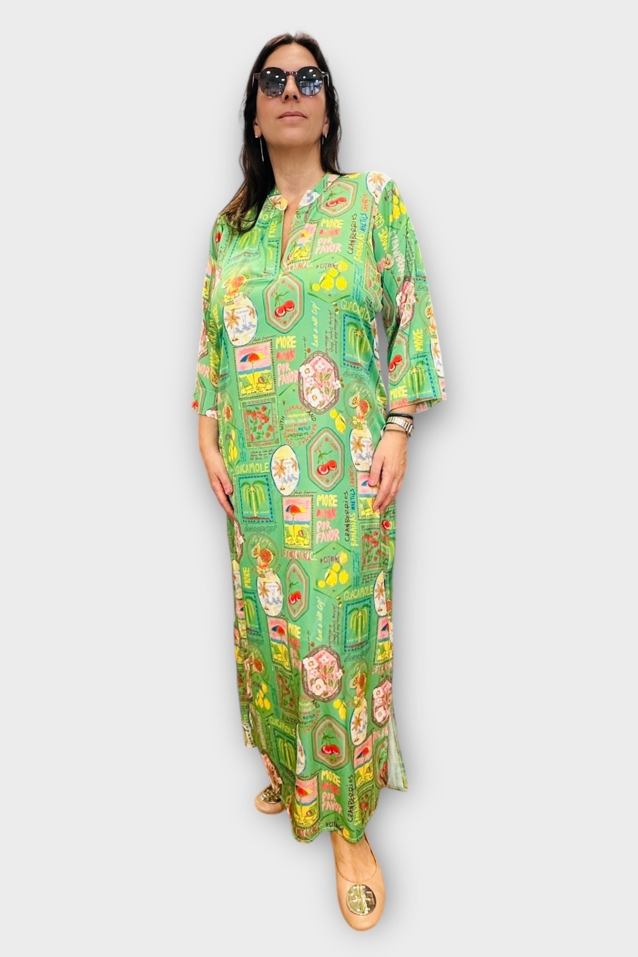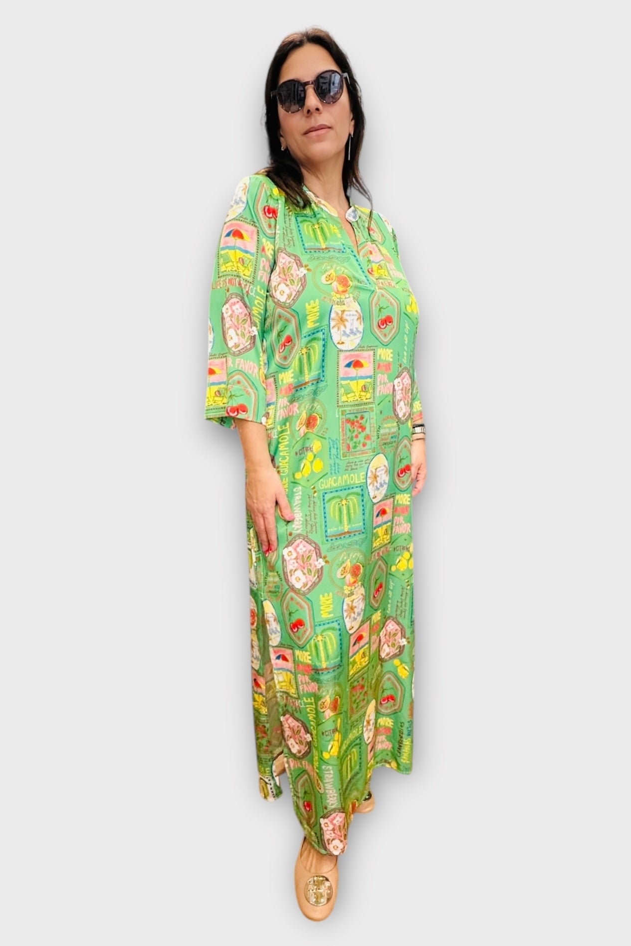 New Age - Maxi Φόρεμα Καφτάνι Santorini -24 Πράσινο