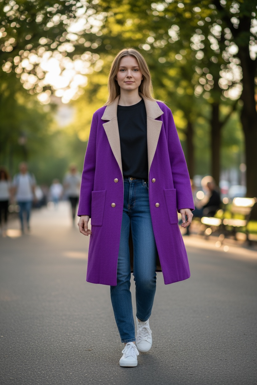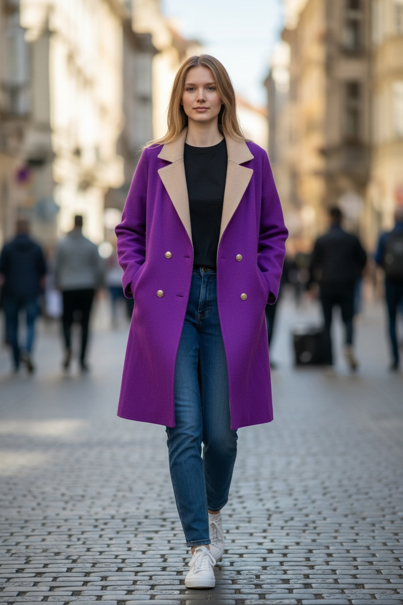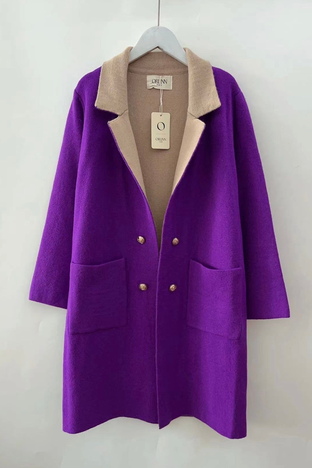 Orlinn - Ζακέτα Midi με Διπλή Απόχρωση στο Πέτο & Διακοσμητικά Χρυσά Κουμπιά Μωβ