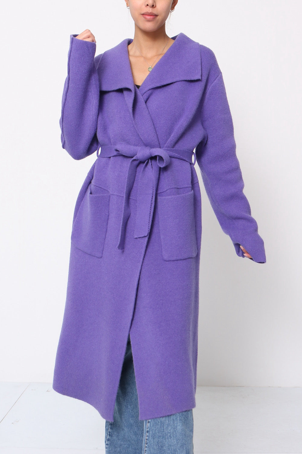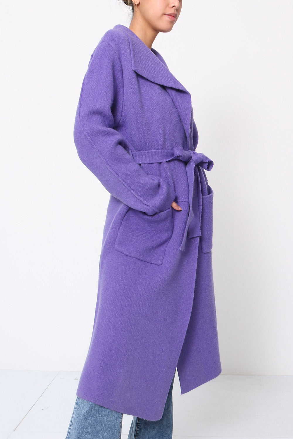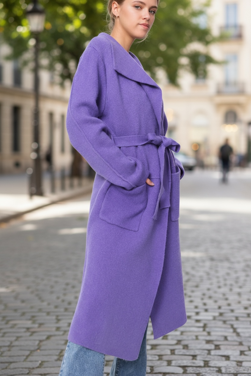 Orlinn - Μωβ Ζακέτα Midi με Τσέπες, Ζώνη & Σκισίματα στο Πλάι