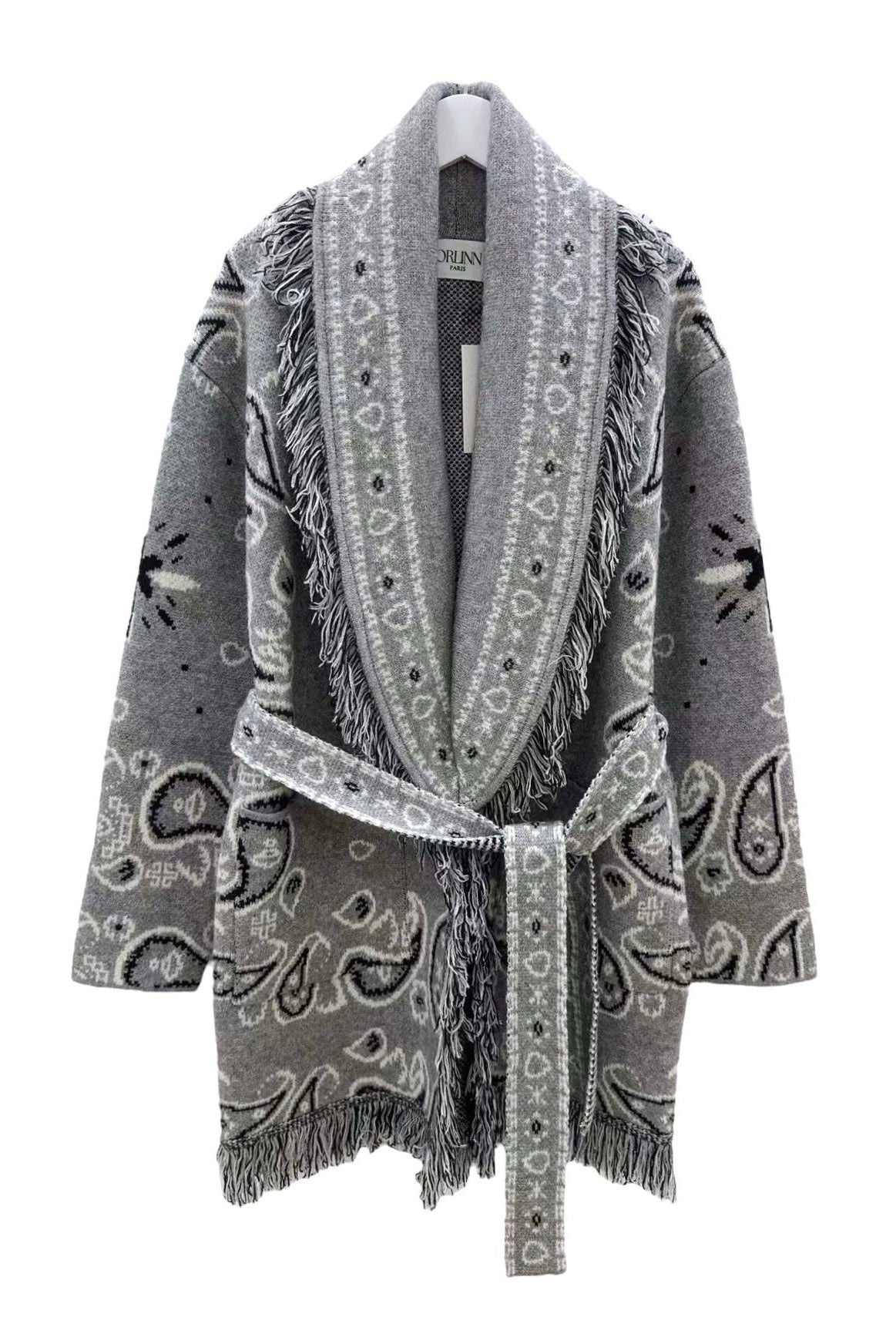 Orlinn - Ζακέτα Παλτό Boho Chic με Κρόσσια & Ζώνη Γκρι
