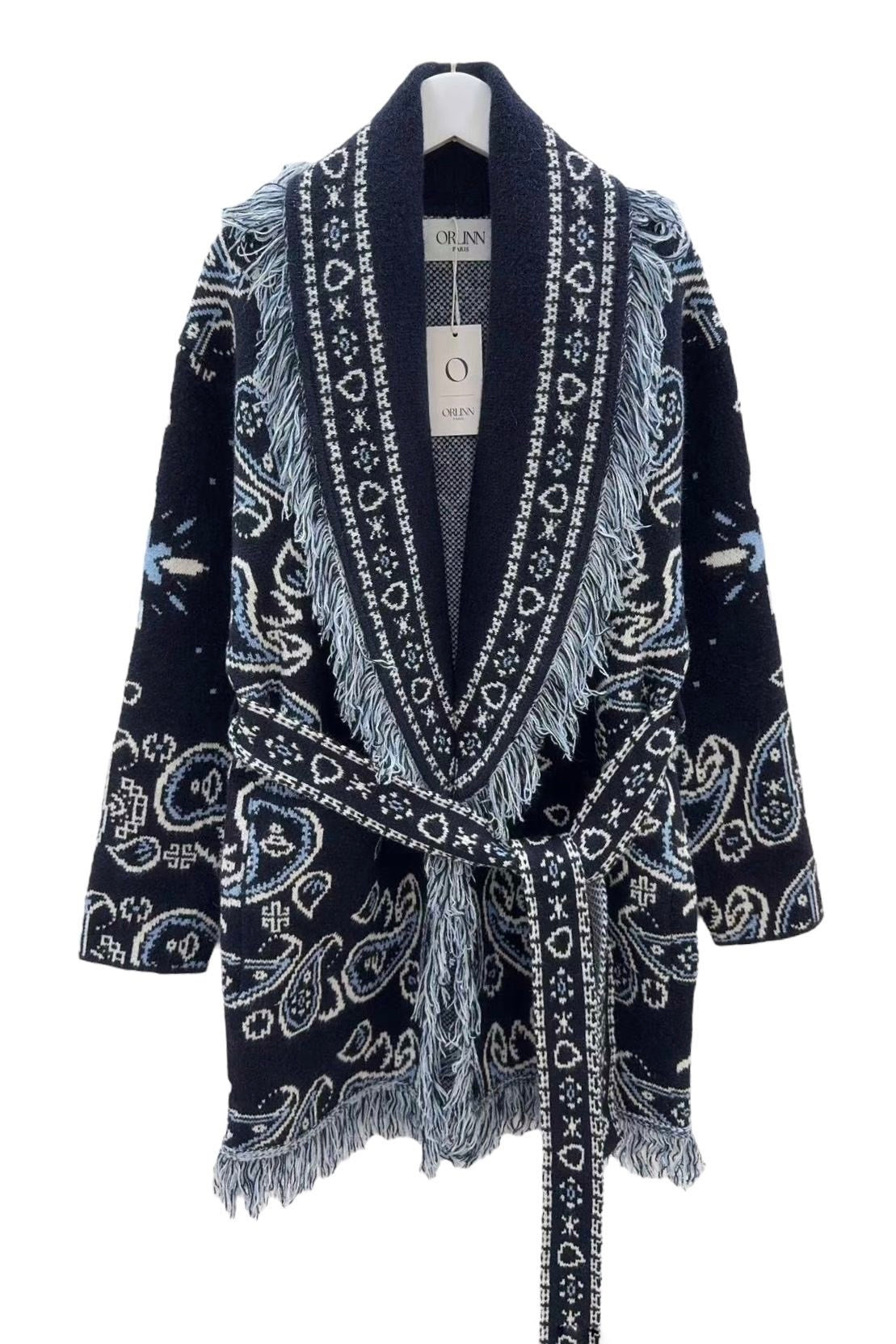 Orlinn - Ζακέτα Παλτό Boho Chic με Κρόσσια & Ζώνη Μπλε
