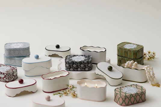 Τα κεριά της συλλογής Cherie χαρίζουν αβίαστα μια αίσθηση γοητείας σε κάθε χώρο. Κομψό κεραμικό δοχείο με διακριτικό μοτίβο, διαθέτει δύο φυτίλια ενώ μόλις τελειώσει το κερί, μπορείτε να χρησιμοποιήσετε το δοχείο για να φυλάξετε κοσμήματα ή μικροαντικείμενα! Συνδυάζεται άψογα με το μεταλλικό κερί Cherie της ίδιας σειράς. Κερί από 100% σόγια με διπλό βαμβακερό φυτίλι σε μεταλλικό δοχείο με καπάκι. Νότες κορυφής: Πέταλα Κυκλάμινου, Φύλλα Ευκαλύπτου, Λιωμένη Λεβάντα. Μεσαίες Νότες: Λευκό Θυμάρι, Ροδοκόκκινη Παιώνια, ʼγρια Μιγκε. Νότες βάσης: Soft Musk, Ορχιδέα, Βανίλιας, Σπόρος Τόνκα. Η διάρκεια και η ένταση αρώματος αντιστοιχούν σε 36+ ώρες ορθής καύσης.