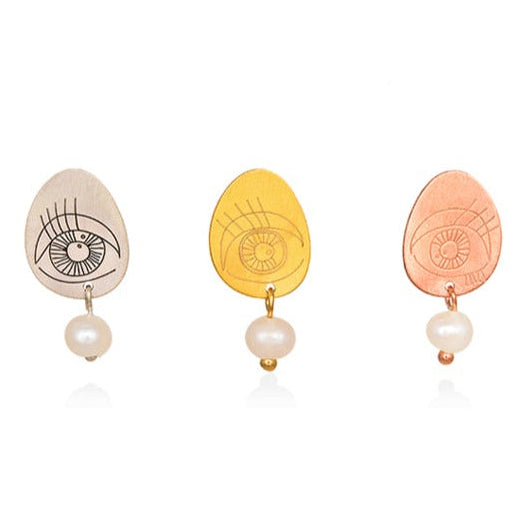 Pavlina Verouki Classic Eyes - Σκουλαρίκια Μεγάλο Βότσαλο Μαργαριτάρι Ροζ Χρυσό
