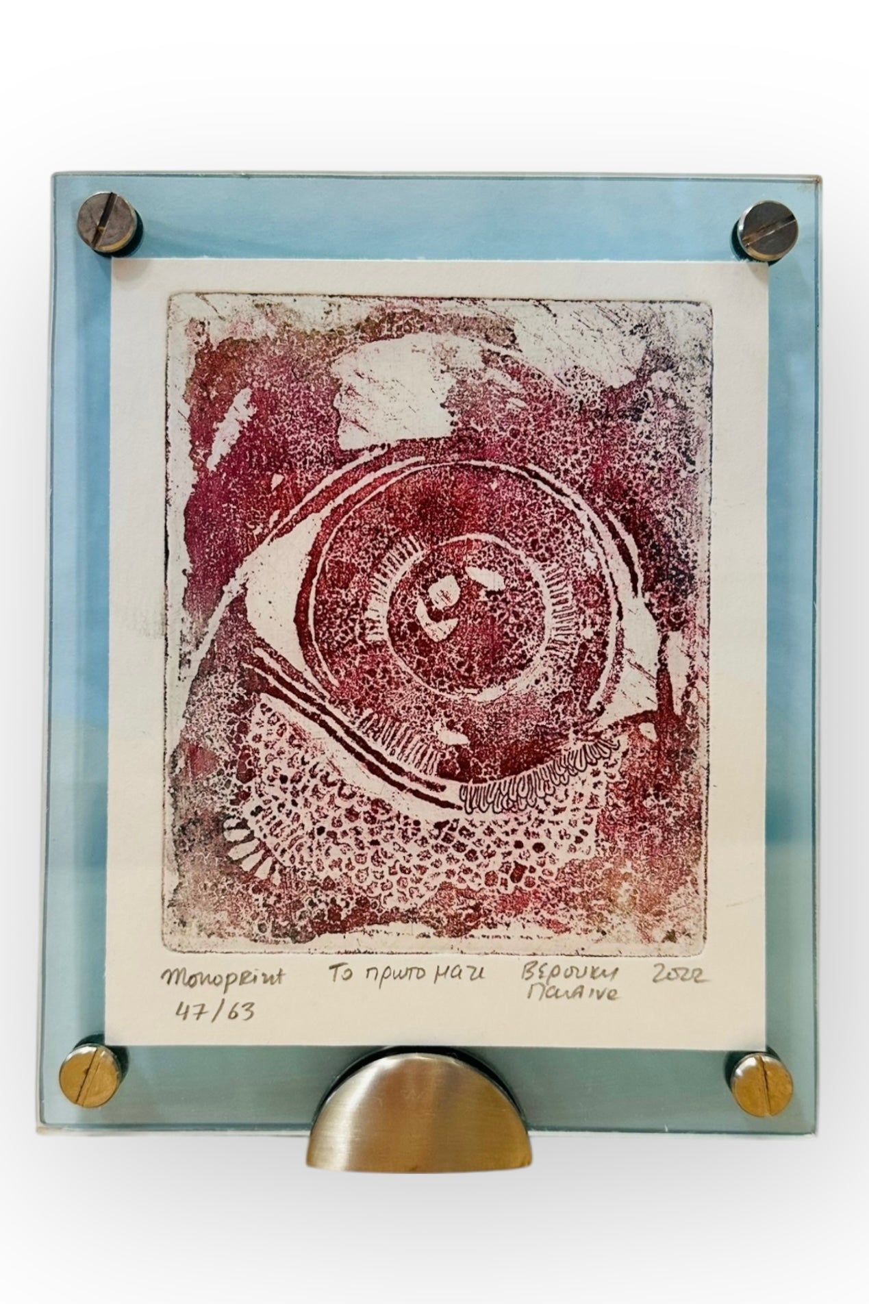Ενα έργο τέχνης με τίτλο "το πρώτο μάτι" ("the first eye"), δημιουργία της Παυλίνας Βερούκη το 2022. Πρόκειται για ένα μονότυπο (monoprint), το οποίο είναι η 47η από τις 63 εκτυπώσεις της σειράς. Σε κορνίζα από plexiglass με διαστάσεις 16*13cm