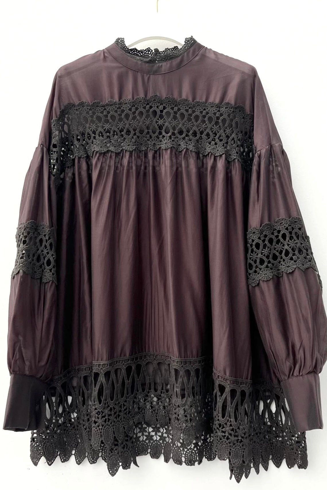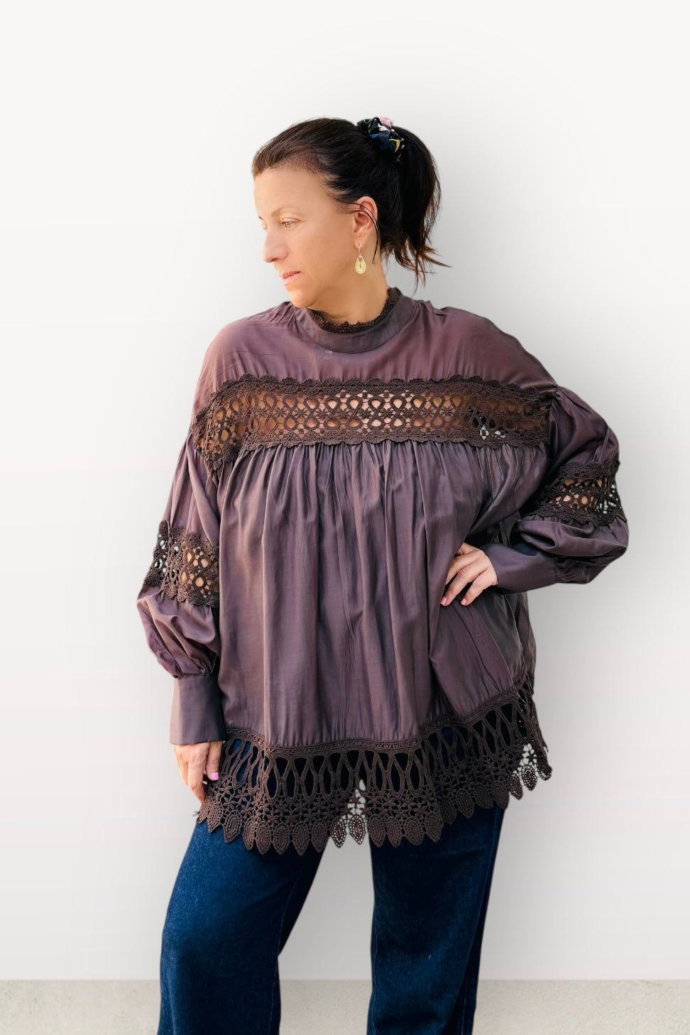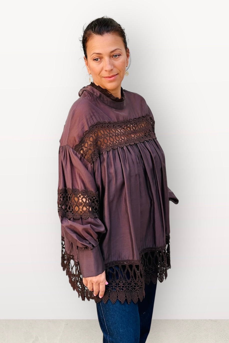 Μπλούζα - Πουκάμισο Καφέ Με Δαντέλα