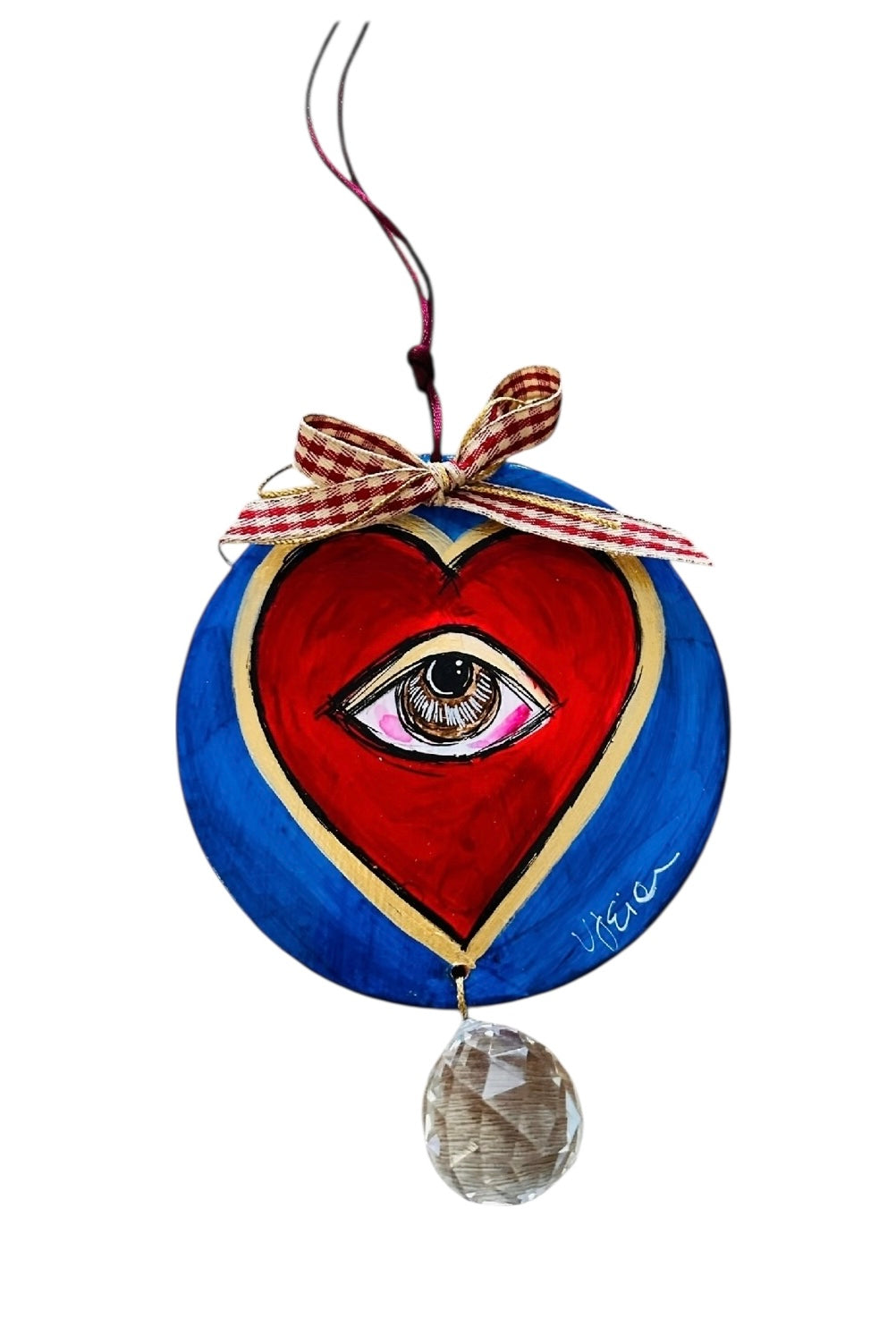 Ψαρόνι - Κεραμική Καρδιά Γούρι Με Κρύσταλλο