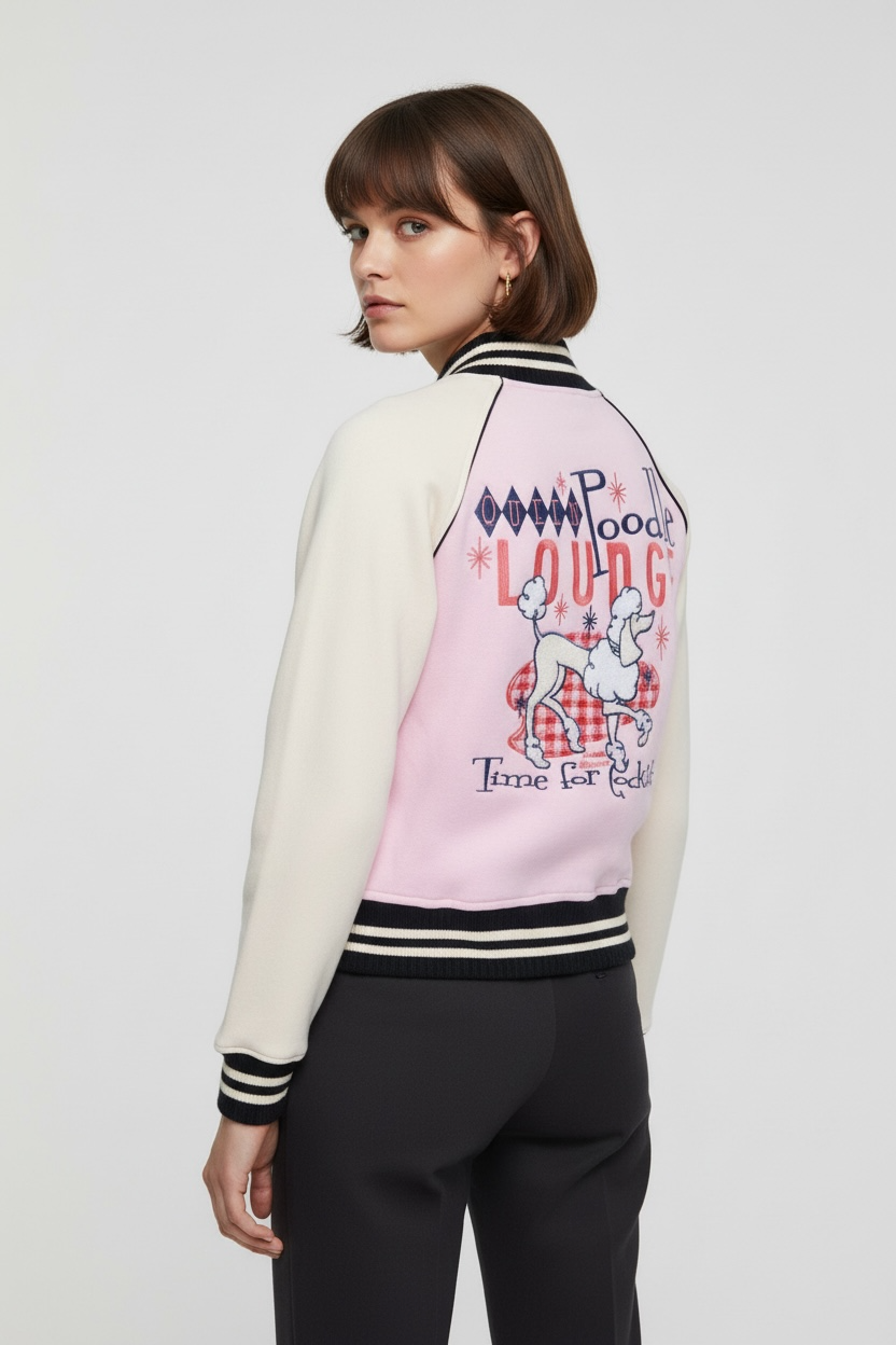 Queen Kerosin - Κολεγιακό Τζάκετ «Poodle Lounge» Ροζ