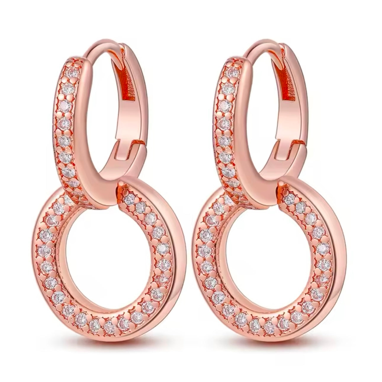 Σκουλαρίκια Διπλά Κρικάκια Ασήμι 925 Ροζ Επιχρύσωμα Με Ζιργκόν