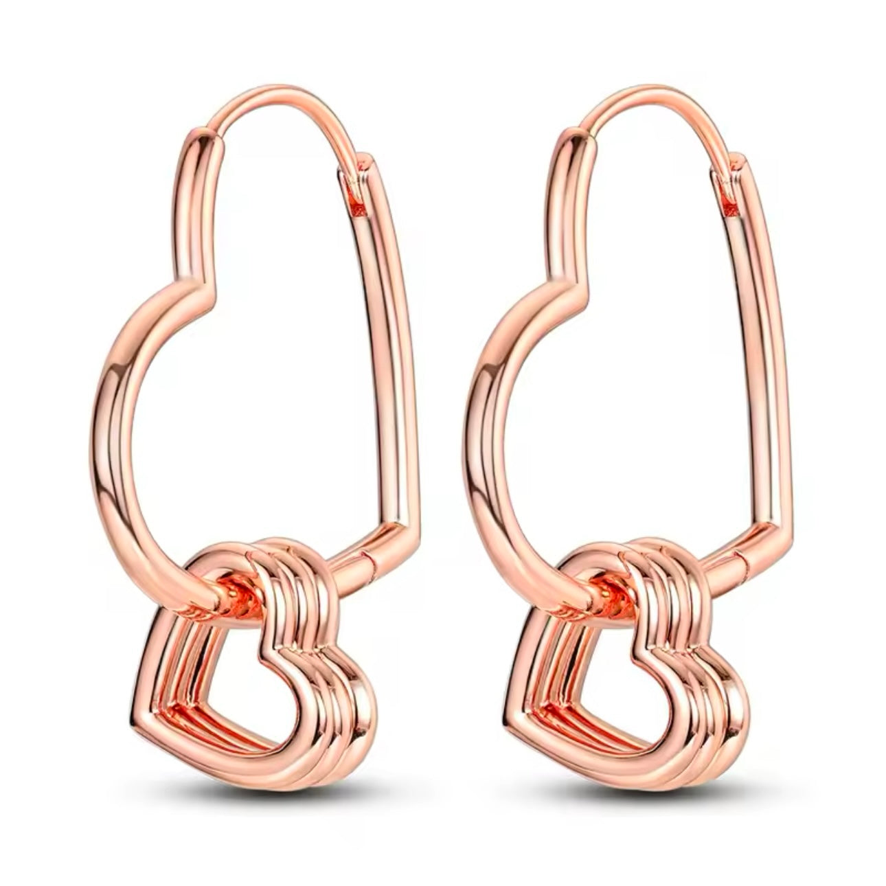 Σκουλαρίκια Καρδιές Ασήμι 925 Ροζ Επιχρύσωμα