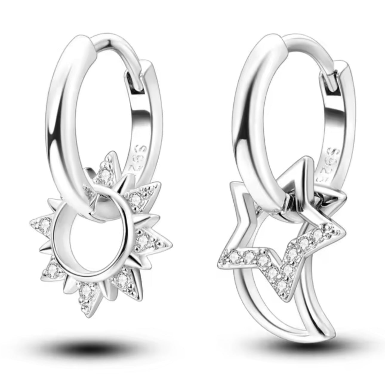 Σκουλαρίκια Κρικάκια 925 Ασημένια Αστεράκια, Φεγγάρι & Ήλιος