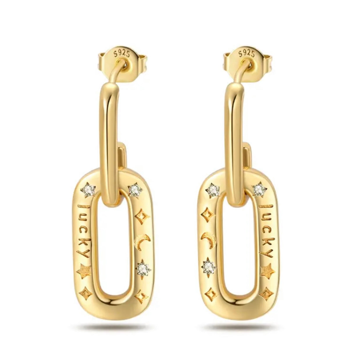 Σκουλαρίκια καρφωτά Ασήμι 925 επιχρυσωμένα- lucky