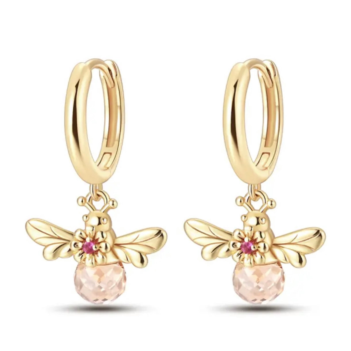 Σκουλαρίκια Κρικάκια Ασήμι 925 επιχρυσωμένα μέλισσα