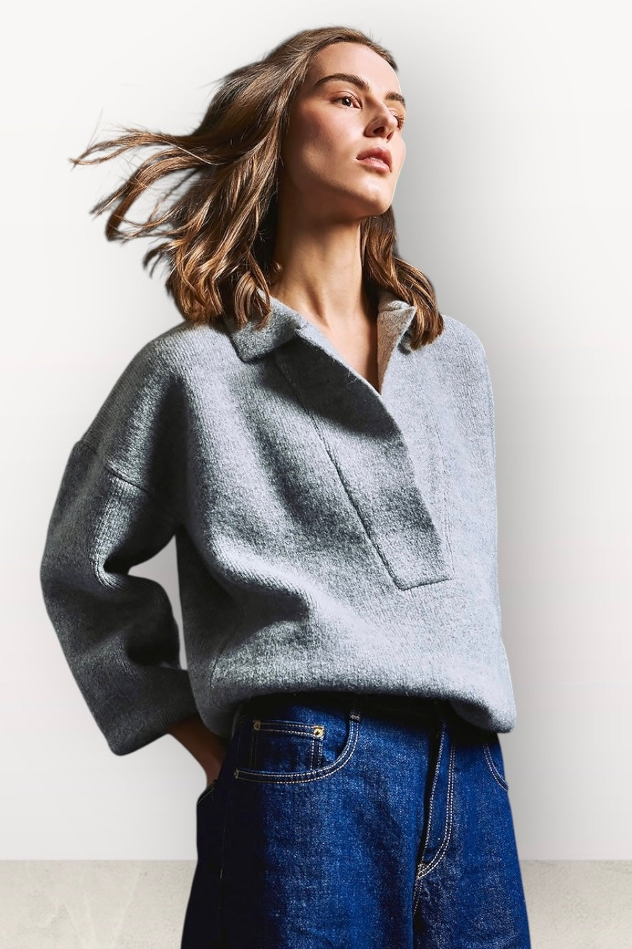 Tailor Made - Minimal Πλεκτό Φούτερ Γκρι