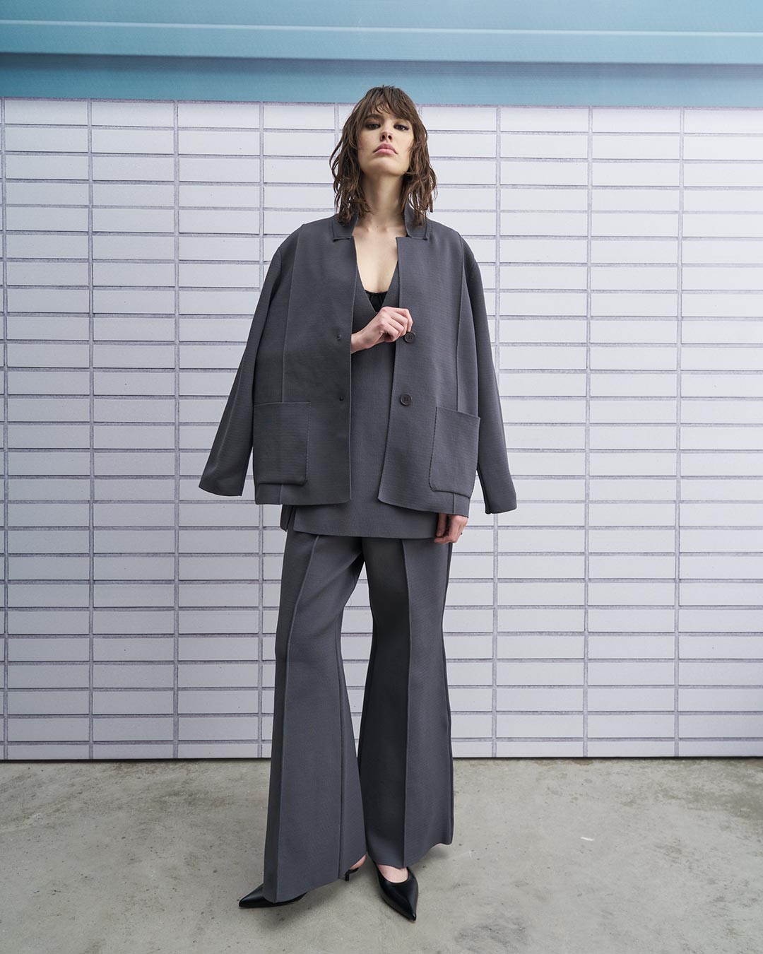 Tailor Made - Oversized Πλεκτή Ζακέτα Γκρι