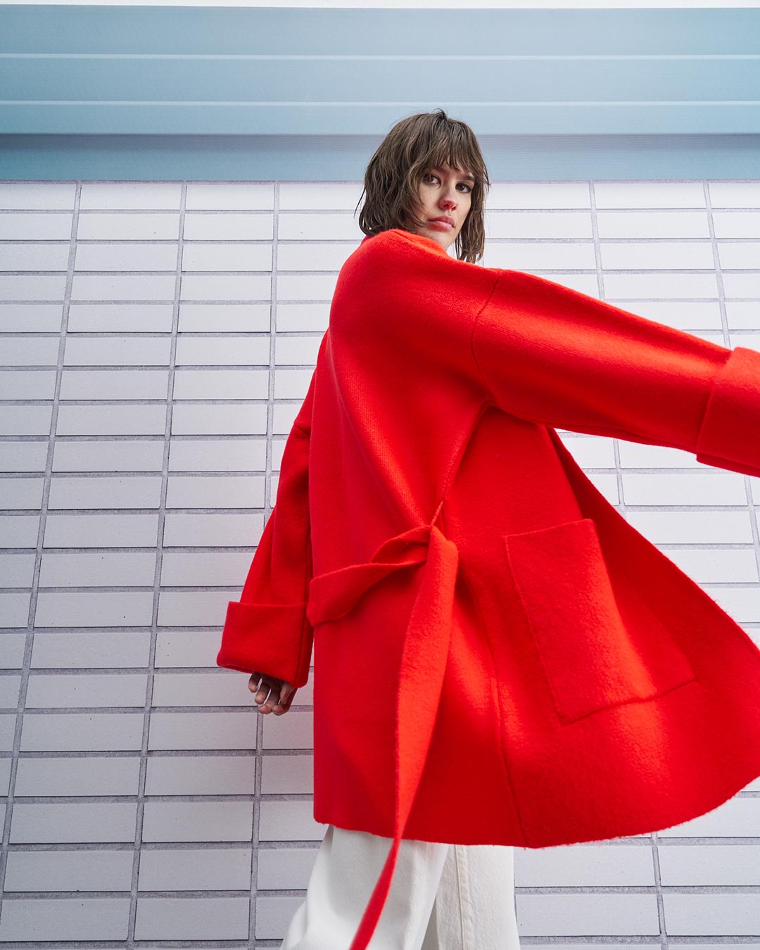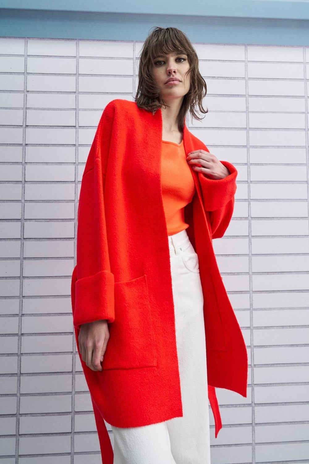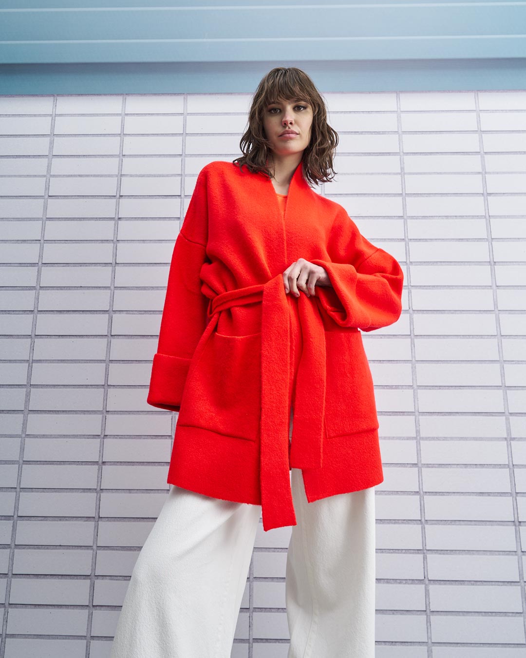 Tailor Made - Oversized Ζακέτα Με Τσέπες Και Ζώνη Κόκκινη
