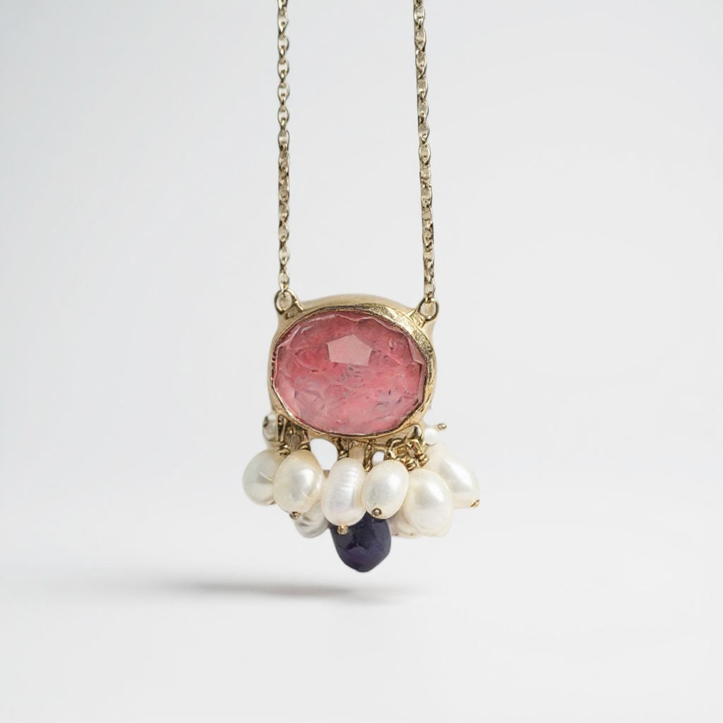 Tonia Makri - Χειροποίητο Επίχρυσο Ασημένιο Κολιέ με ημιπολύτιμους λίθους