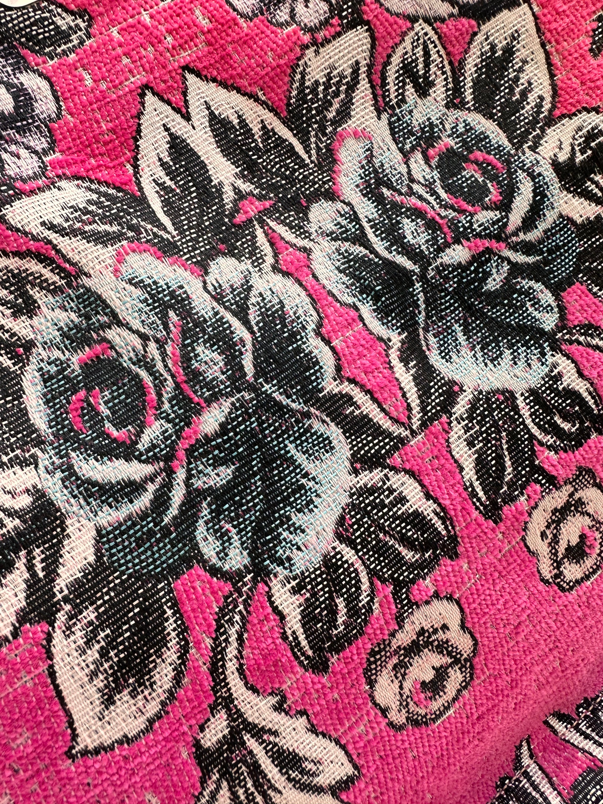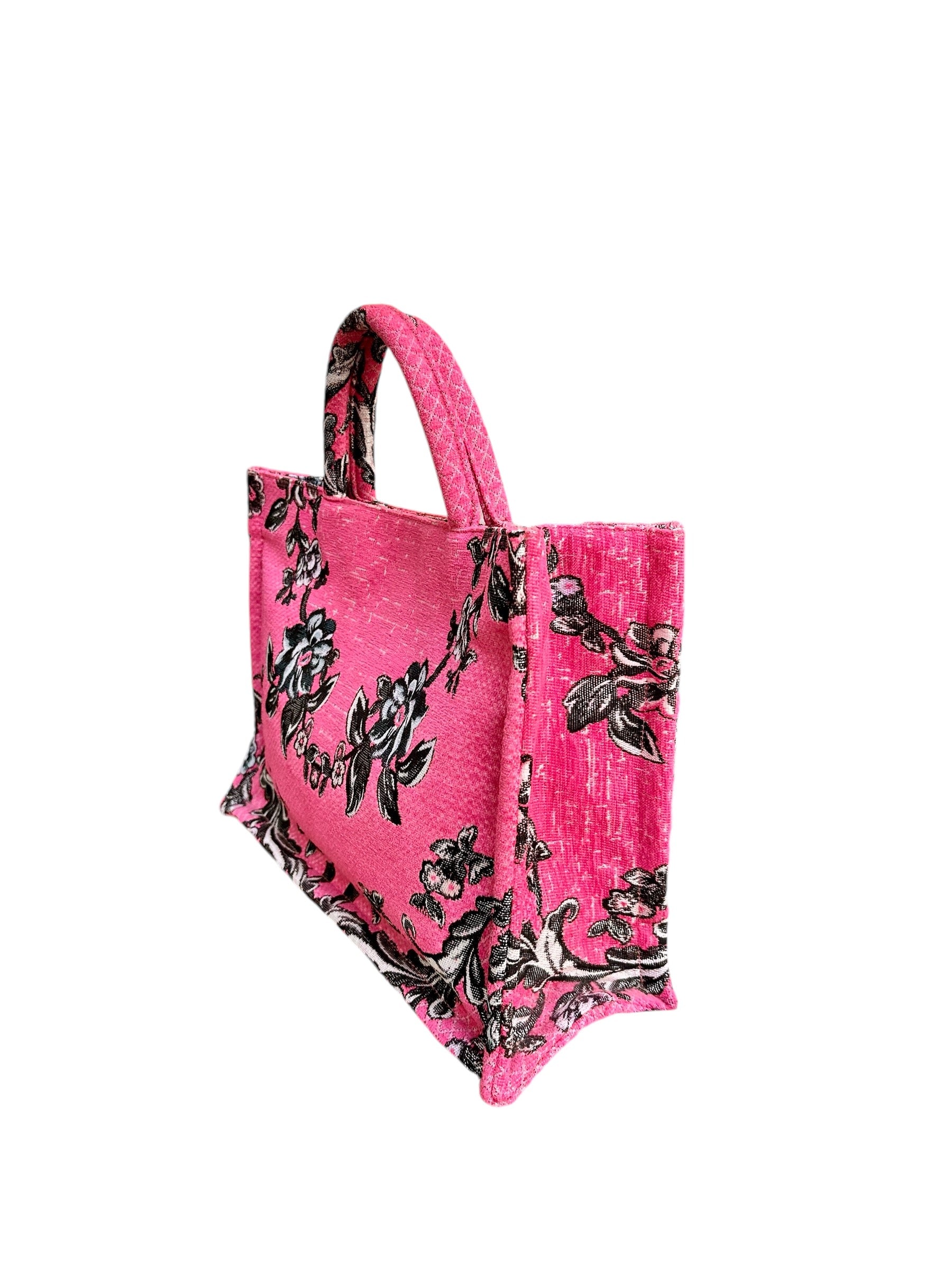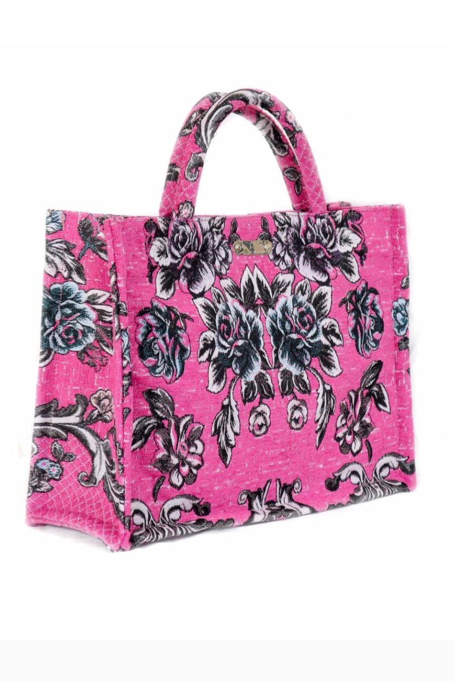 Τσάντα χειρός με εντυπωσιακό φλοράλ σχέδιο σε αποχρώσεις του μαύρου και του γκρι πάνω σε φούξια βάση. Το υλικό της είναι ανθεκτικό και ιδανικό για καθημερινή χρήση, ενώ οι ευρύχωρες διαστάσεις της την καθιστούν ιδανική για να χωρέσει όλα τα απαραίτητα. Διαθέτει πρακτικά χερούλια για άνετη μεταφορά και είναι εξαιρετική επιλογή για casual εμφανίσεις με στυλ.