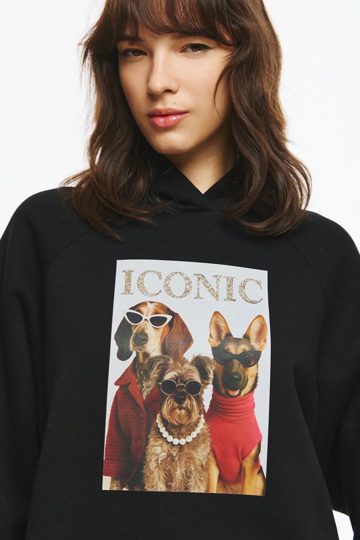 Φούτερ με fleece εσωτερικά, με φουσκωτά μανίκια, φαρδιά γραμμή oversized με μπροστινή τσέπη καγκουρό & κουκούλα. Στην μπροστινή πλευρά έχει στάμπα με σχέδιο. Δημιουργώντας ένα παιχνιδιάρικο και fashion forward Look! Ιδανικό για casual και άνετα looks.