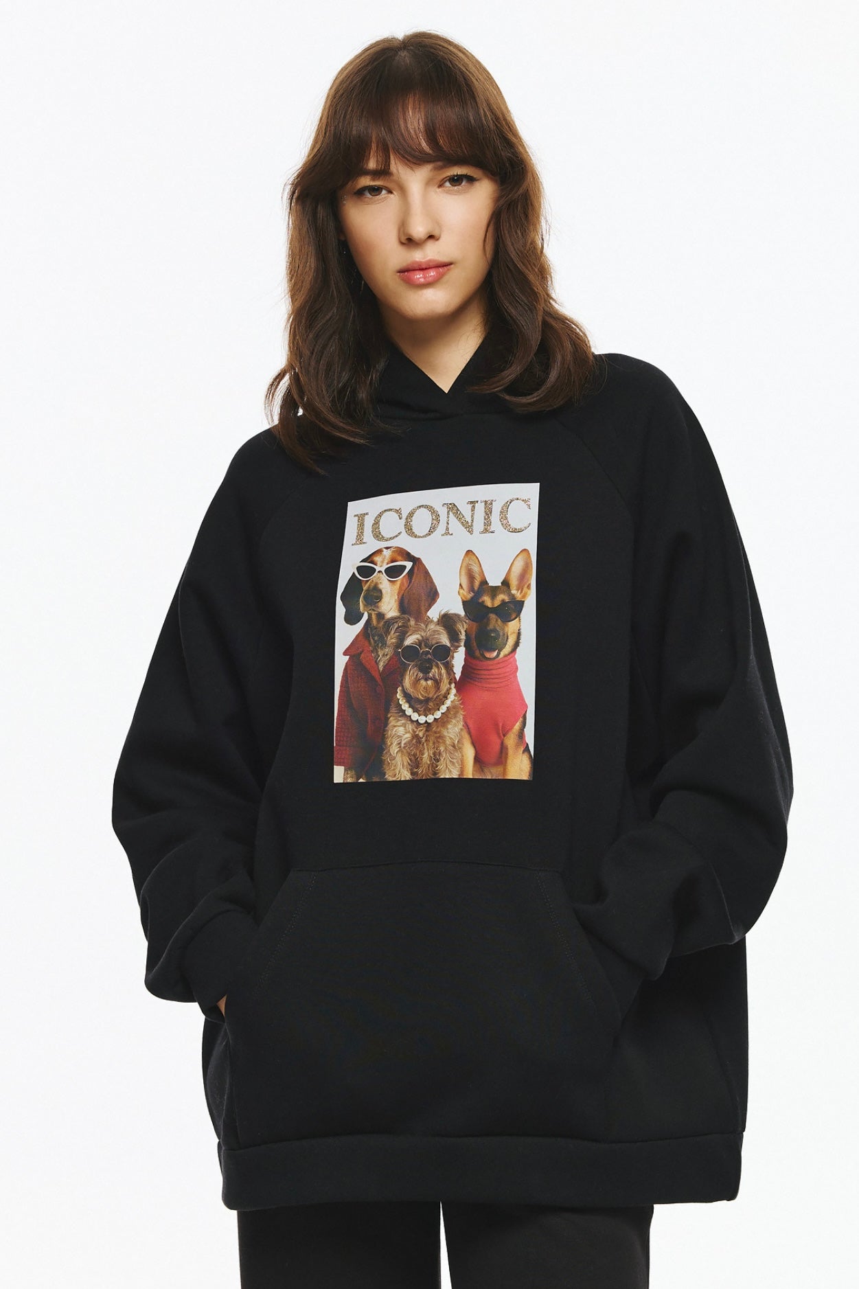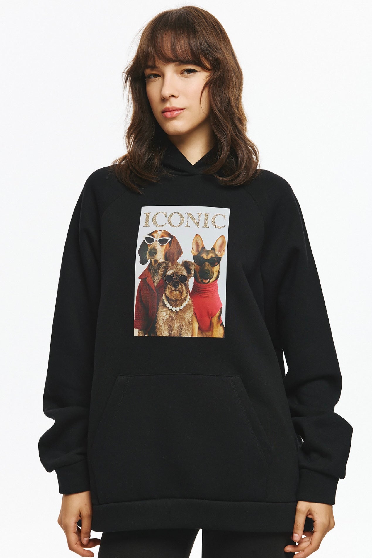 Unitee- Φούτερ Μπλούζα Μαύρο με Κουκούλα Iconic