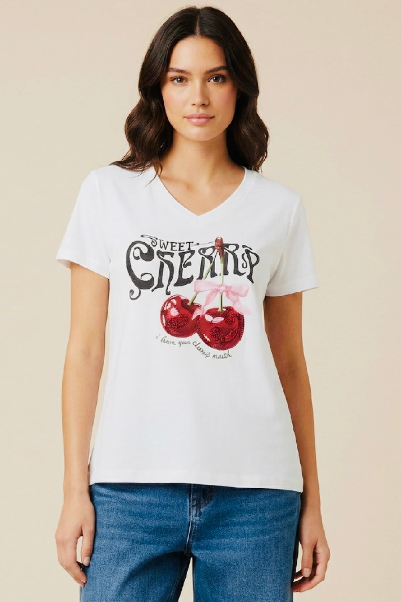 Unitee - Λευκό Μακό T-shirt με Στάμπα «Sweet Cherry»