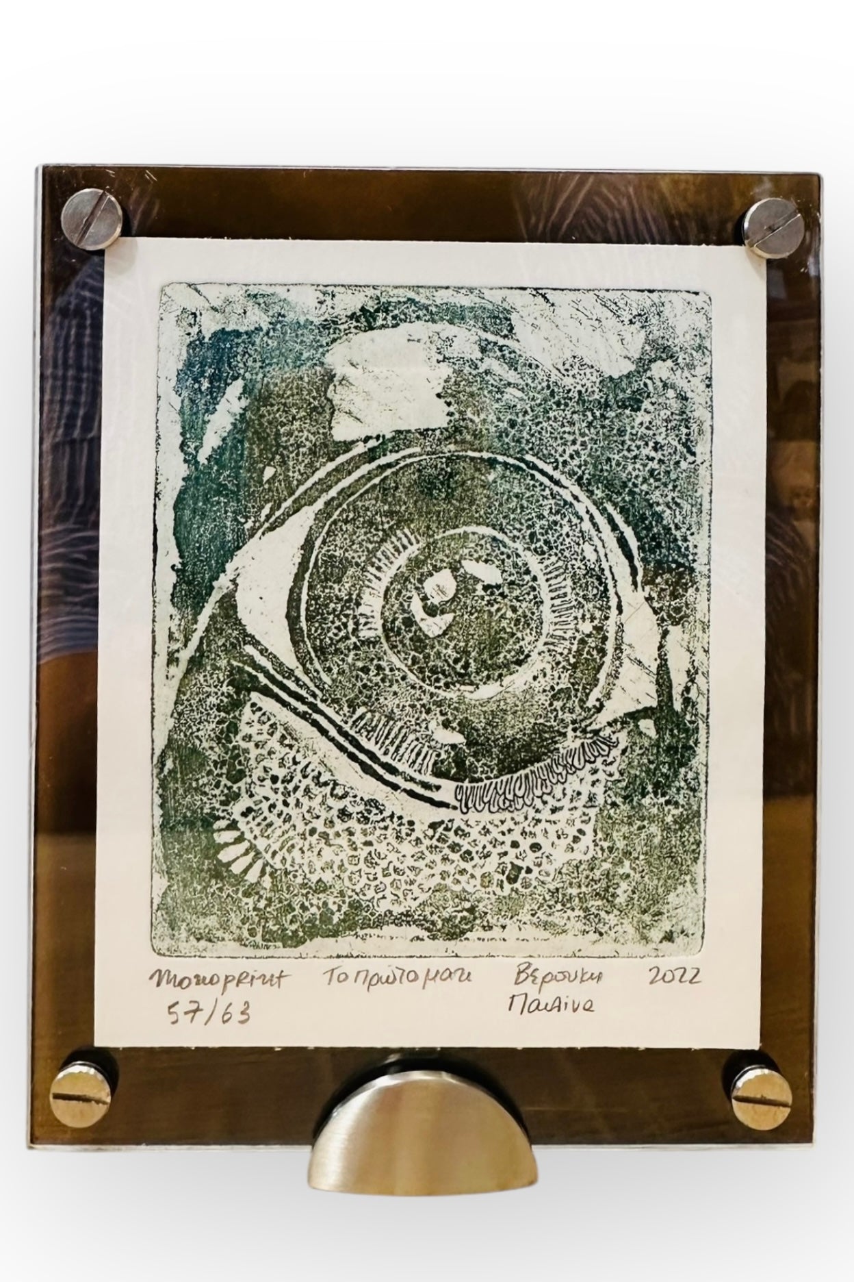 Ενα έργο τέχνης με τίτλο "το πρώτο μάτι" ("the first eye"), δημιουργία της Παυλίνας Βερούκη το 2022. Πρόκειται για ένα μονότυπο (monoprint), το οποίο είναι η 57η από τις 63 εκτυπώσεις της σειράς. Σε κορνίζα από plexiglass με διαστάσεις 16*13cm