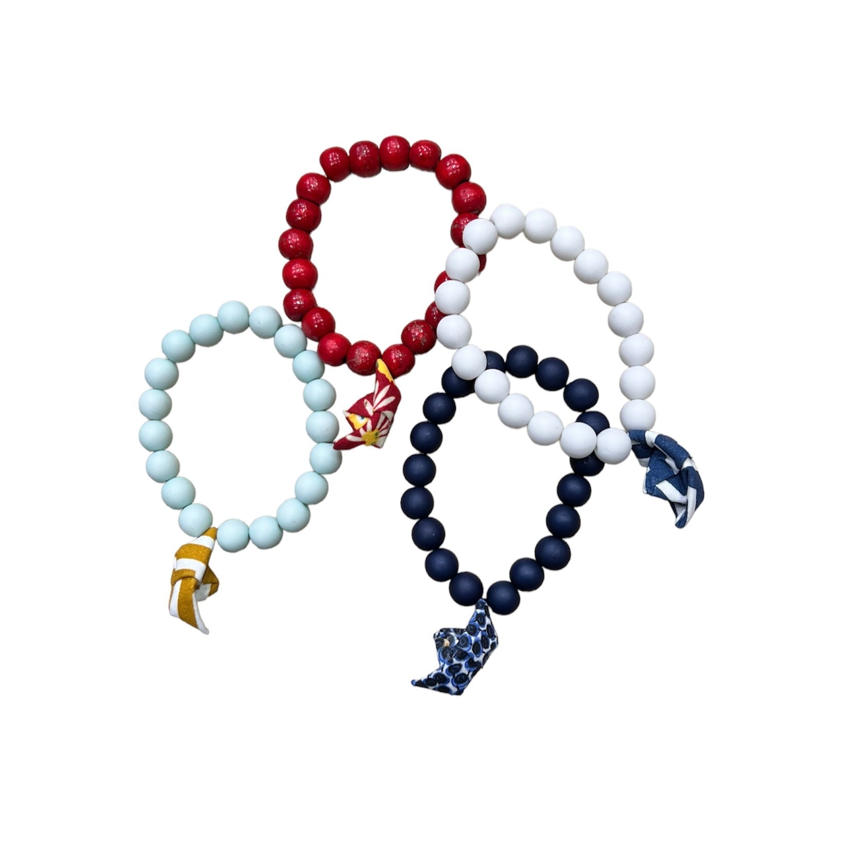 Ελαστικό βραχιόλι ξύλινες χάντρες με καραβάκι πάνινο.